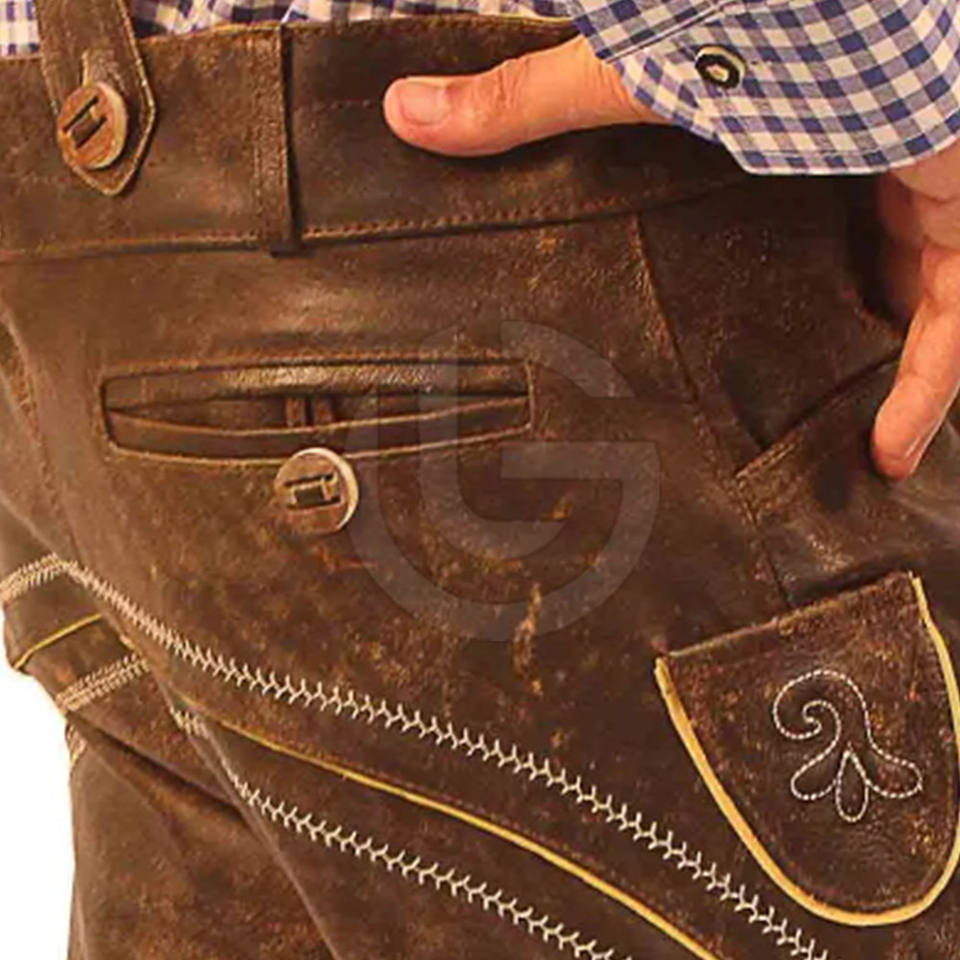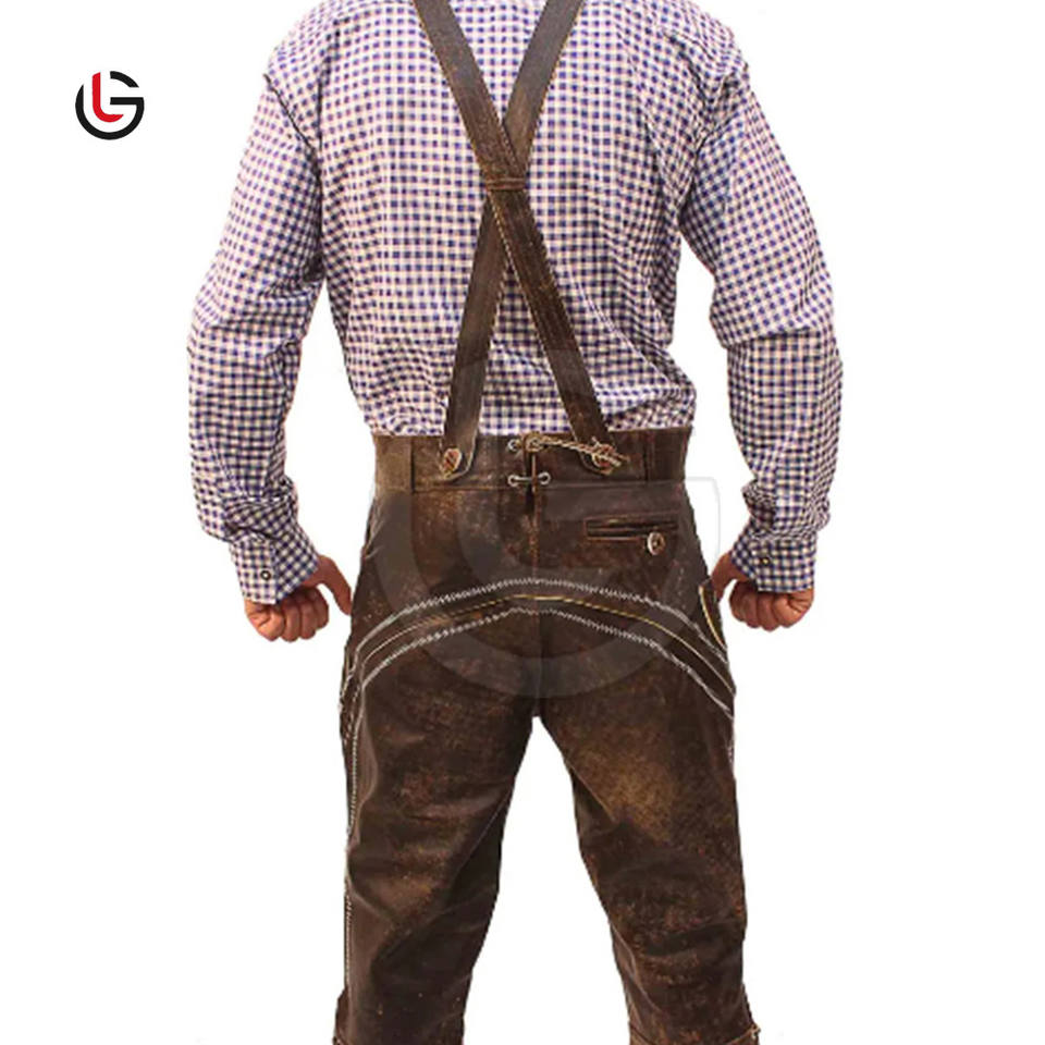 Outfit Classic Brown Cowhide Suede Leather Oktoberfest Bavarian Lederhosen With Suspender Adjustable Straps Shorts For Men