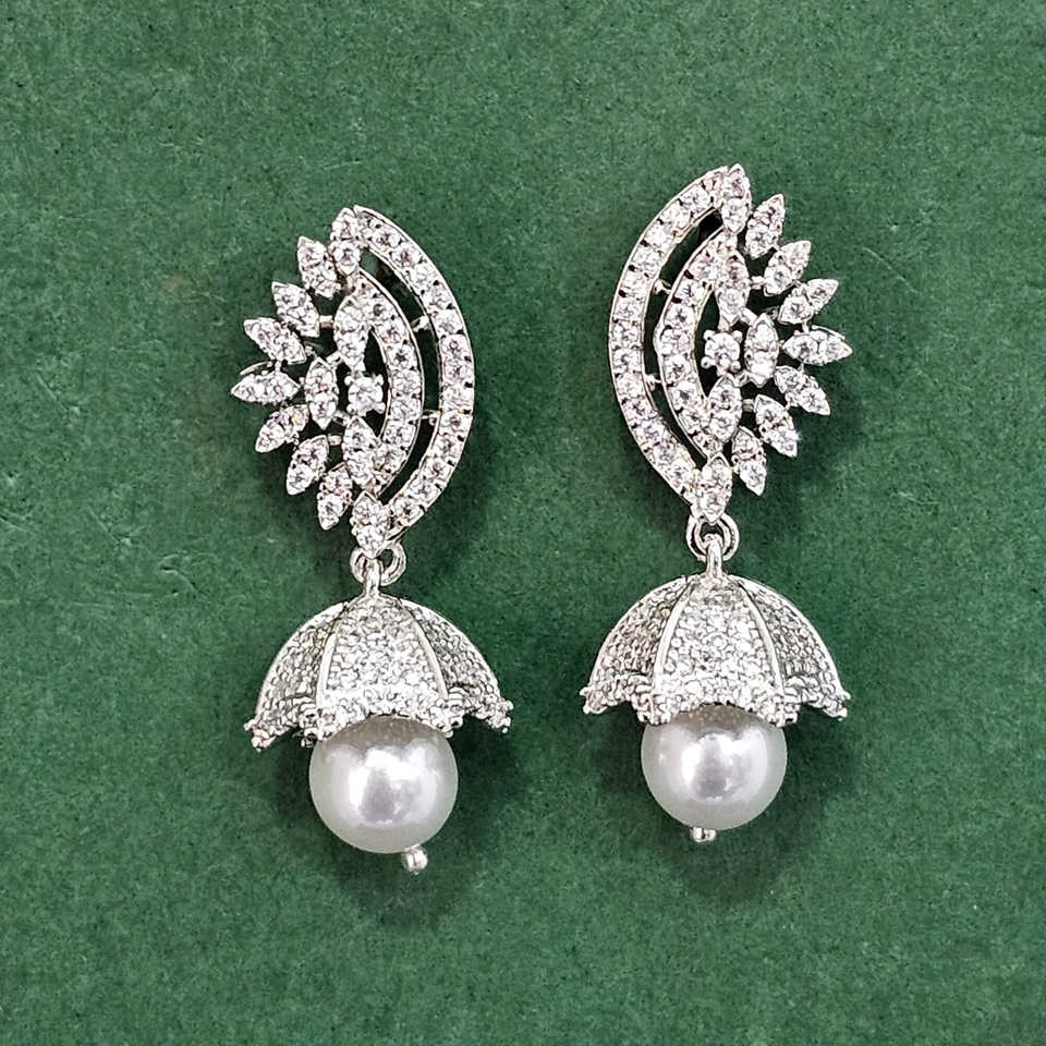 Reasonably Priced CZ Pearl Jhumki 2 Tone Rhodium Plating Fashion Dangle Earrings