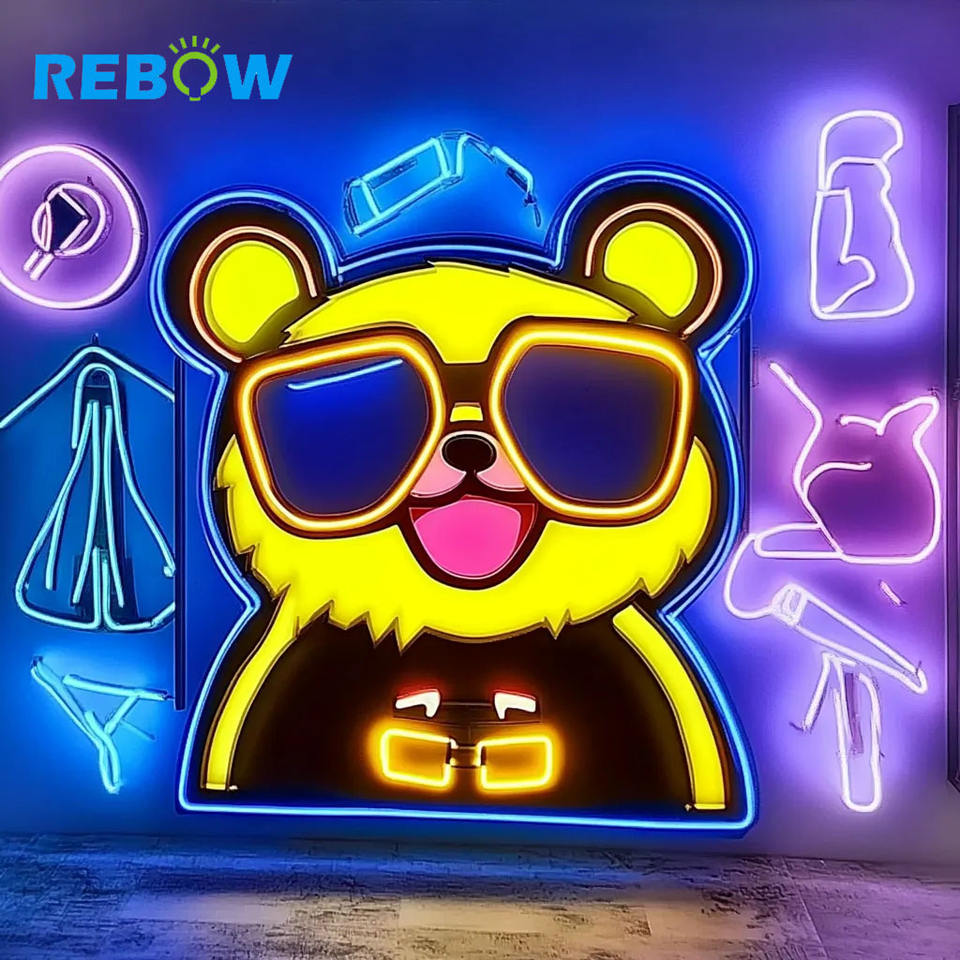 Rebow Drop Shipping Custom Logo Neon Light Wedding Sign UV Printed Custom Neon Sign Advertising Board