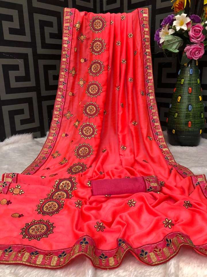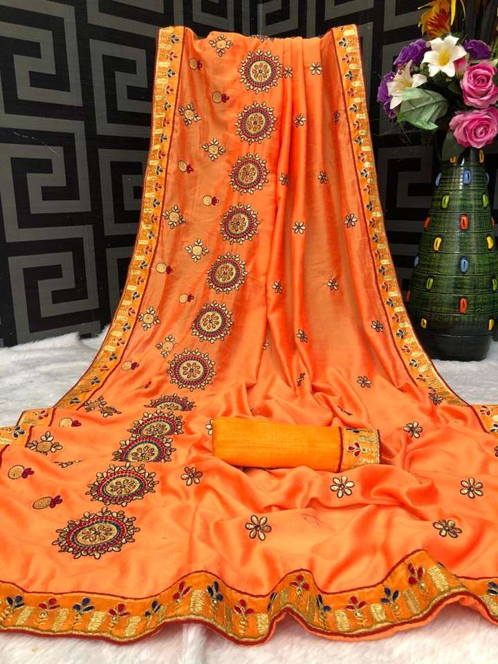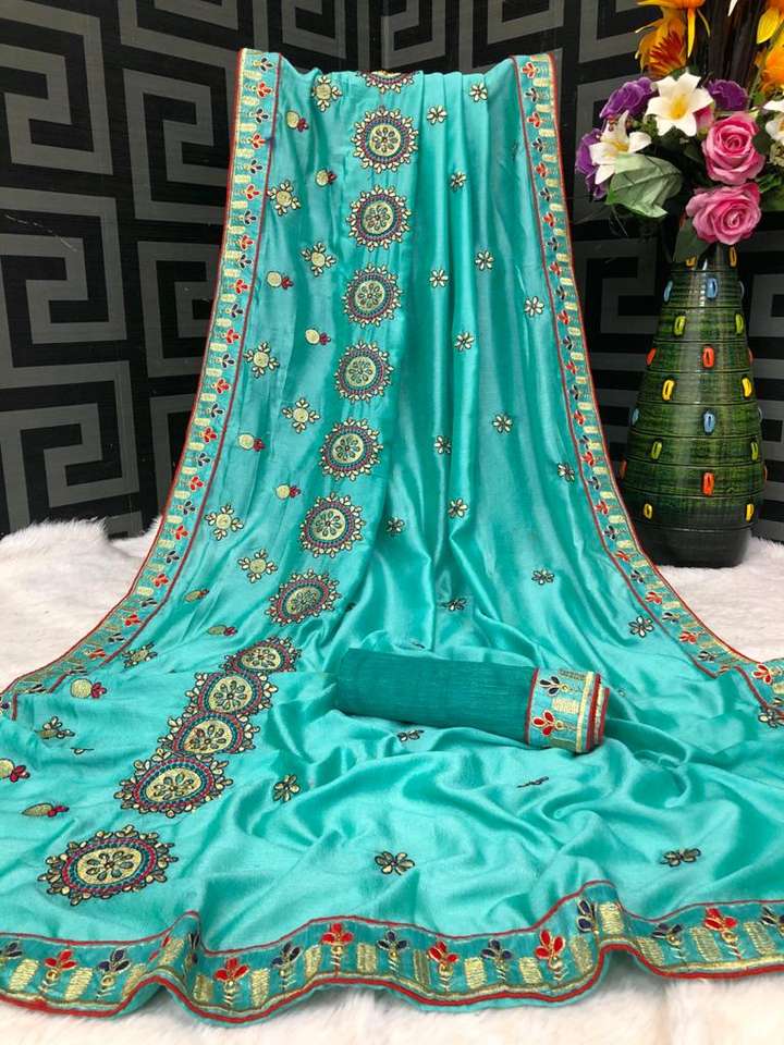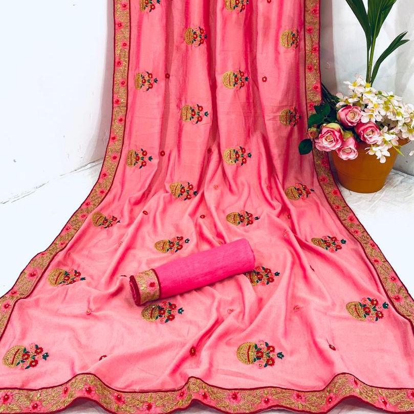 Reception Wear Vichitra Silk Fabric Embroidery Work Saree with Blouse Piece Indian Women Wear Cheap Low Price Wholesale Surat ApparelGarment