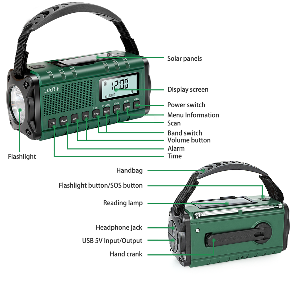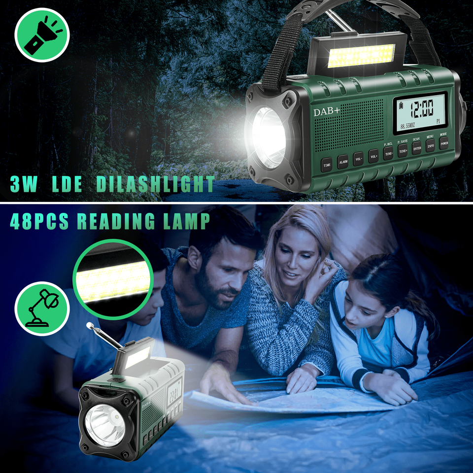 Rechargeable Emergency Disaster Charging Hand Crank DAB+Weather Flashlight Solar Radio 10000mAh XSY-340
