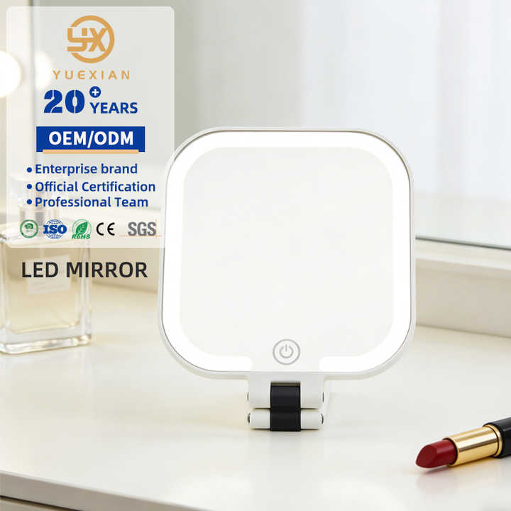 Rechargeable Handheld Lighted Travel Vanity Mirror with Three Color Modes for Girls Touch Sensor Control