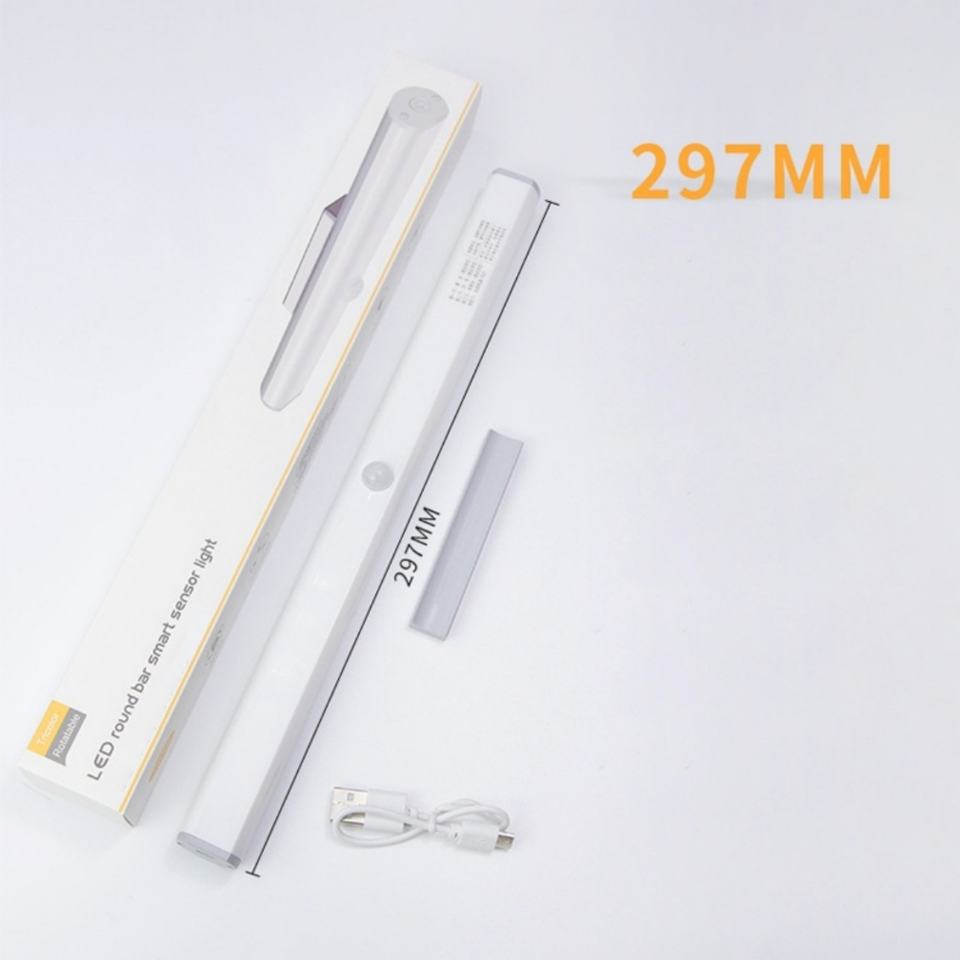 Rechargeable Human Body Sensor LED Night Light Three- Color Rotating LED Round Bar Smart Sensor Light for Bedroom Bathroom