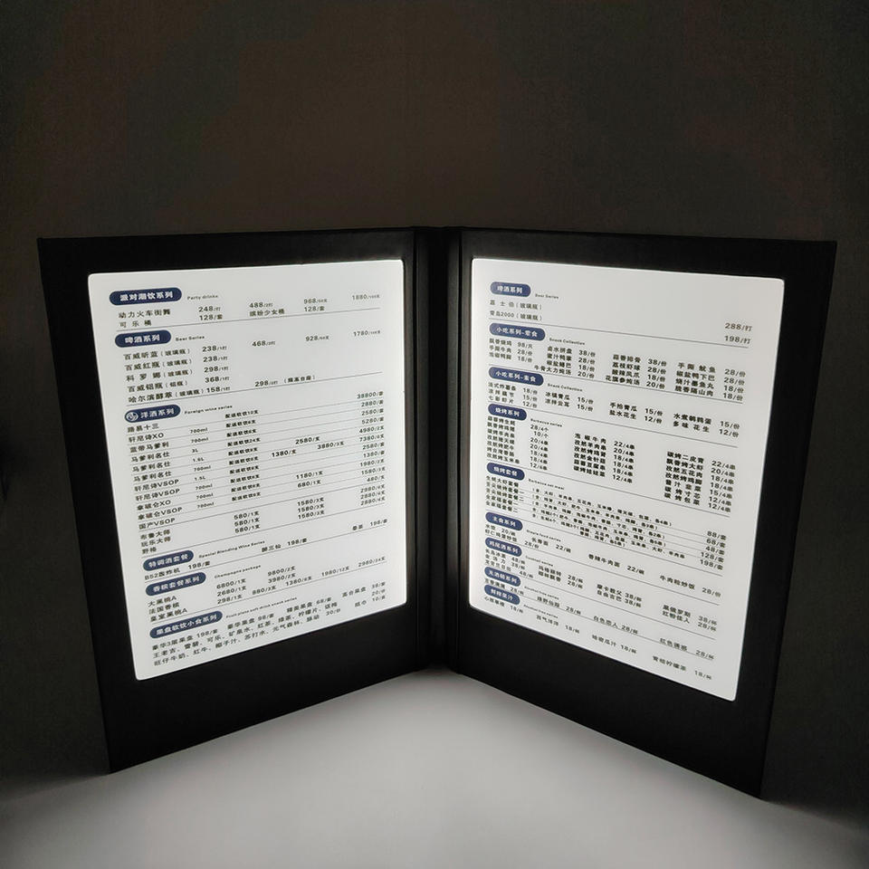 Rechargeable LED Backlit Acrylic Washable Menu Sign Holder Table Tent Display Double Pages A4 Menu Book Cover Restaurant Coffee