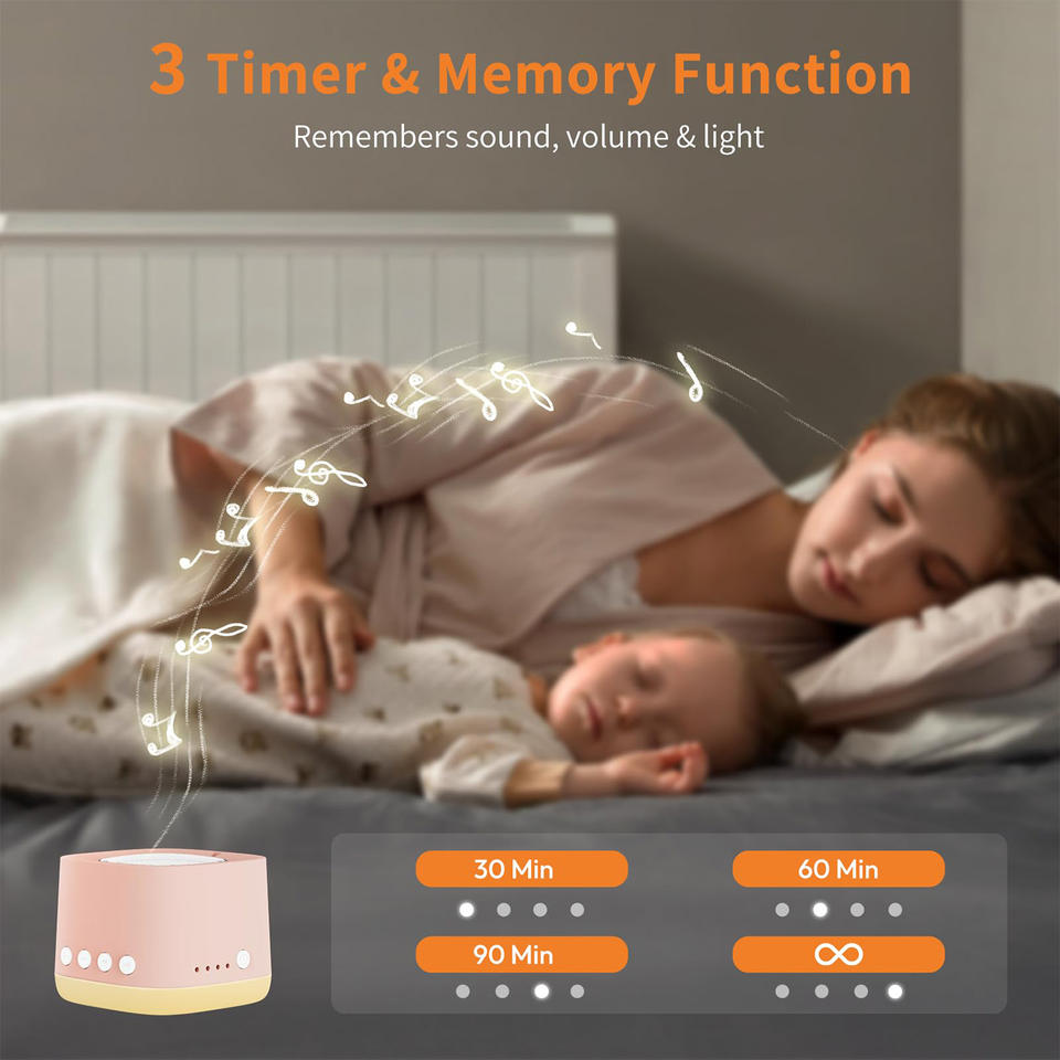 Rechargeable Mini Travel Sleep Sound Machine,Amber Night Light,16 Natural Sounds Timer & Memory Function for Baby Nursery Adult