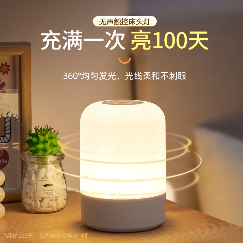 Rechargeable Night Light Led Touch Control Round Bedroom Bedside Lamp With Remote For Sleep Lighting