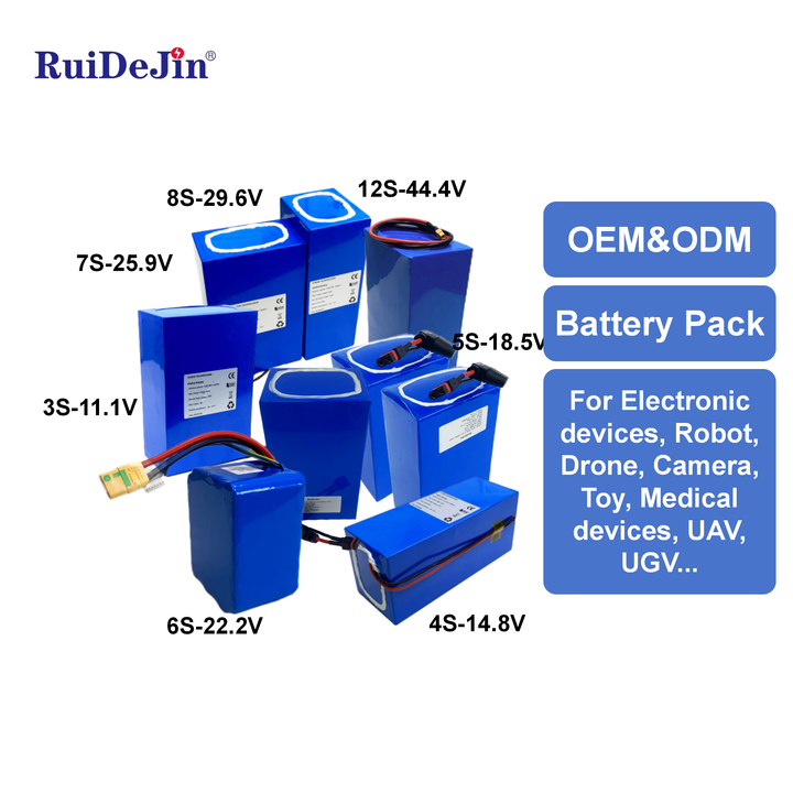 Rechargeable OEM NCM LiFePo4 7.4V 11.1V 12V 14.8V 22.2V 25..9V 29.6V 44.4V 48V Lithium Battery Pack with BMS Variants Available