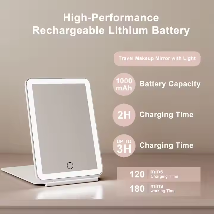 Rechargeable Portable Led Makeup Mirror Foldable Vanity Mirror Folding Makeup Mirror