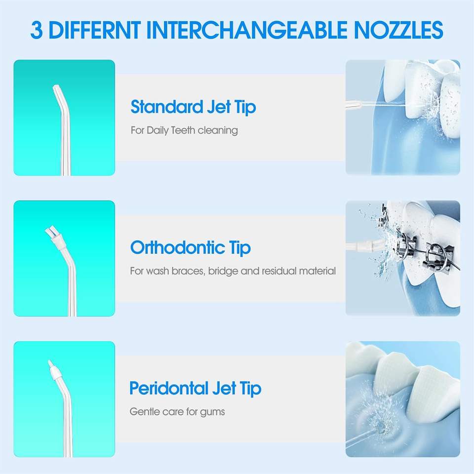 Replacement Nozzles for AL-050231 Cordless Electric for Oral Irrigator Portable USB/Battery for Dental Household Use 2pcs