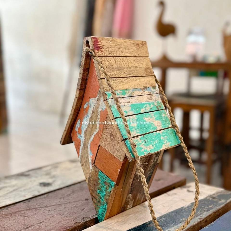 Reclaimed Bird House Handcrafted Sustainable Wooden Pet House Boat Wood Old Color Original Bird Cage House Outdoor Small Bird