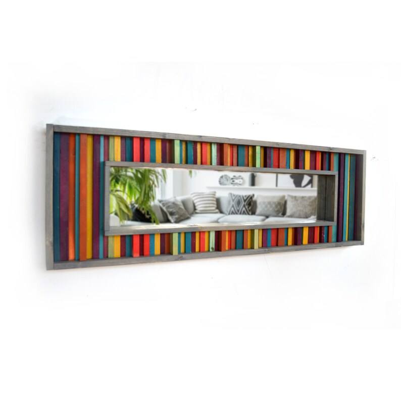 Reclaimed Wood Mirror Mosaic Wall Decor in Striped Red Yellow Purple Teal Unique Mosaic Wall Art 4x3.5 Feet