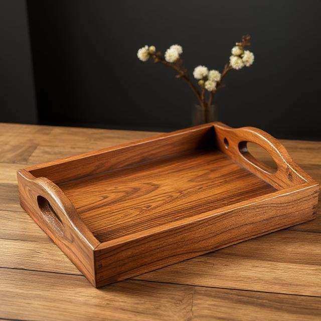 Reclaimed wood tray Lightweight wooden tray Wooden Serving Platter Carved ACacia Tea Tray for Kitchen Use Wholesale Party
