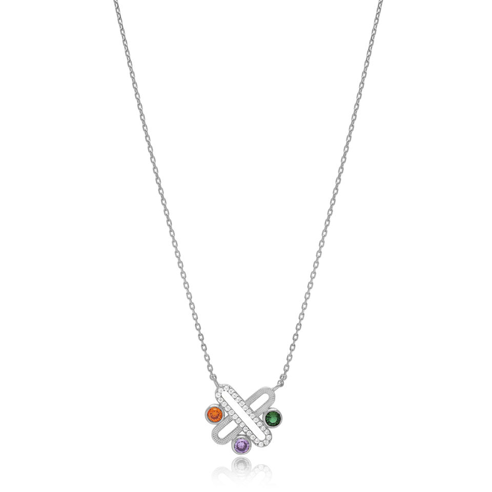 Rectangle Charm Design Chain Charm Colorful Stone Necklace Turkish Wholesale 925 Sterling Silver Jewelry