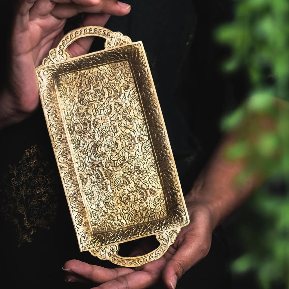 Rectangle Classic Heritage Style Luxury Contemporary Aluminum Dinnerware Set | Handmade Decorative Plates Trays and Bowls