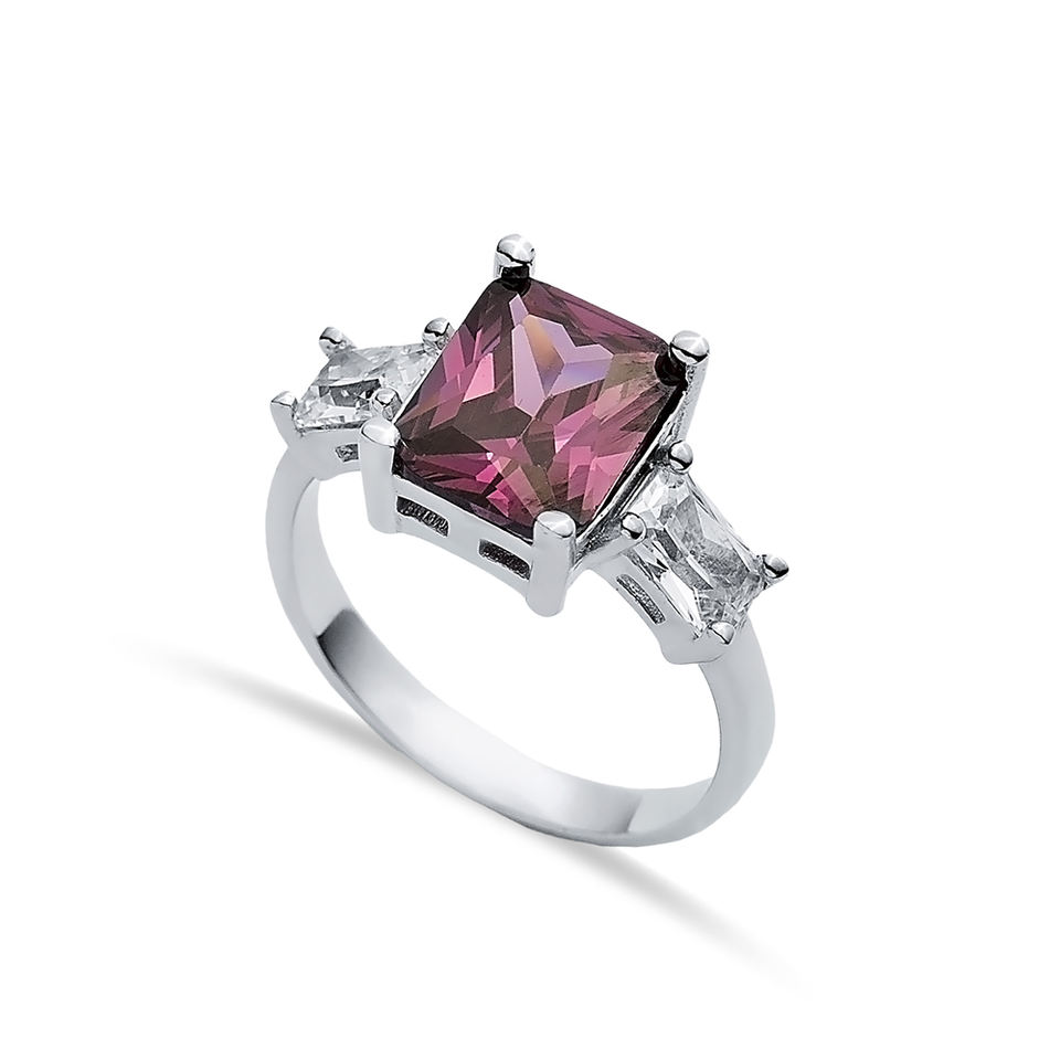 Rectangle Cut Amethyst Baguette Cut CZ Stone Wholesale Turkish Handmade Cluster Ring 925 Sterling Silver Jewelry