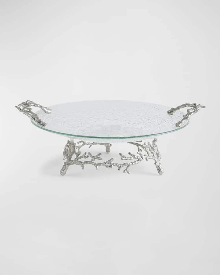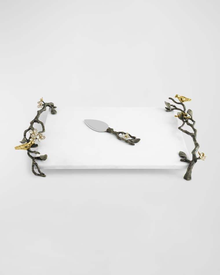 Rectangle Decorative Flower Handle White Marble Cake Stand Metal Eco-Friendly Microwave Safe for Birthday Party