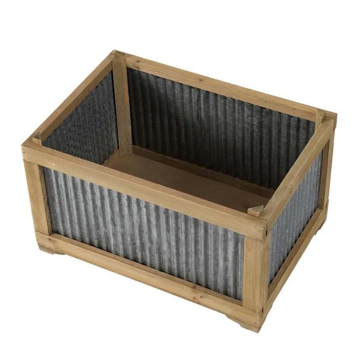 Product Name:Weathered Brown and Galvanized Gray Wood Planter