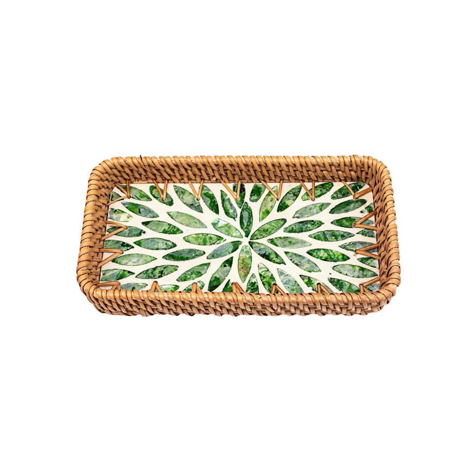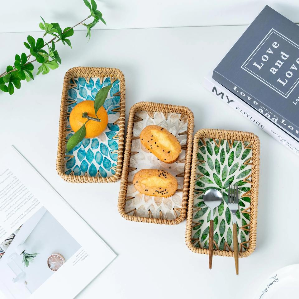 Rectangle Mother Of Pearl Rattan Tray For Aesthetic Family Dining And Vanity Tray For Perfume Bottles Candles Or Jewelry