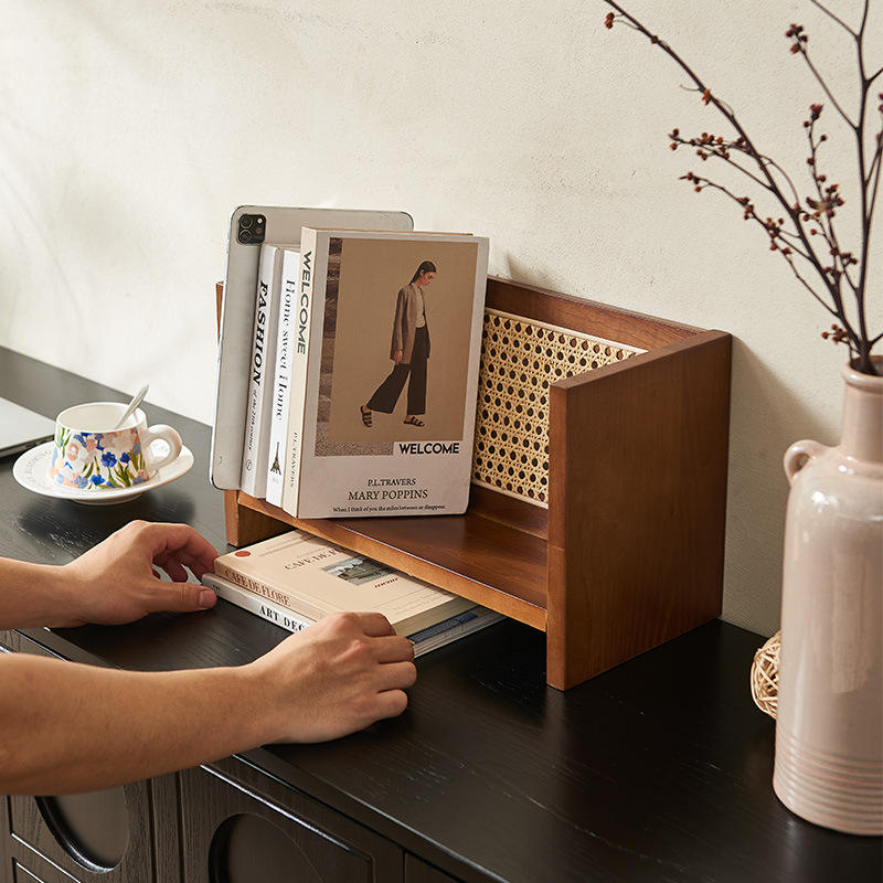Wooden Rattan Book Shelf