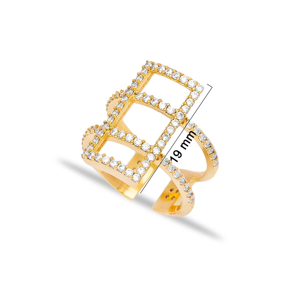 Rectangle Shape Design Clear Stone Adjustable Ring Wholesale Turkish Handmade 925 Sterling Silver Jewelry