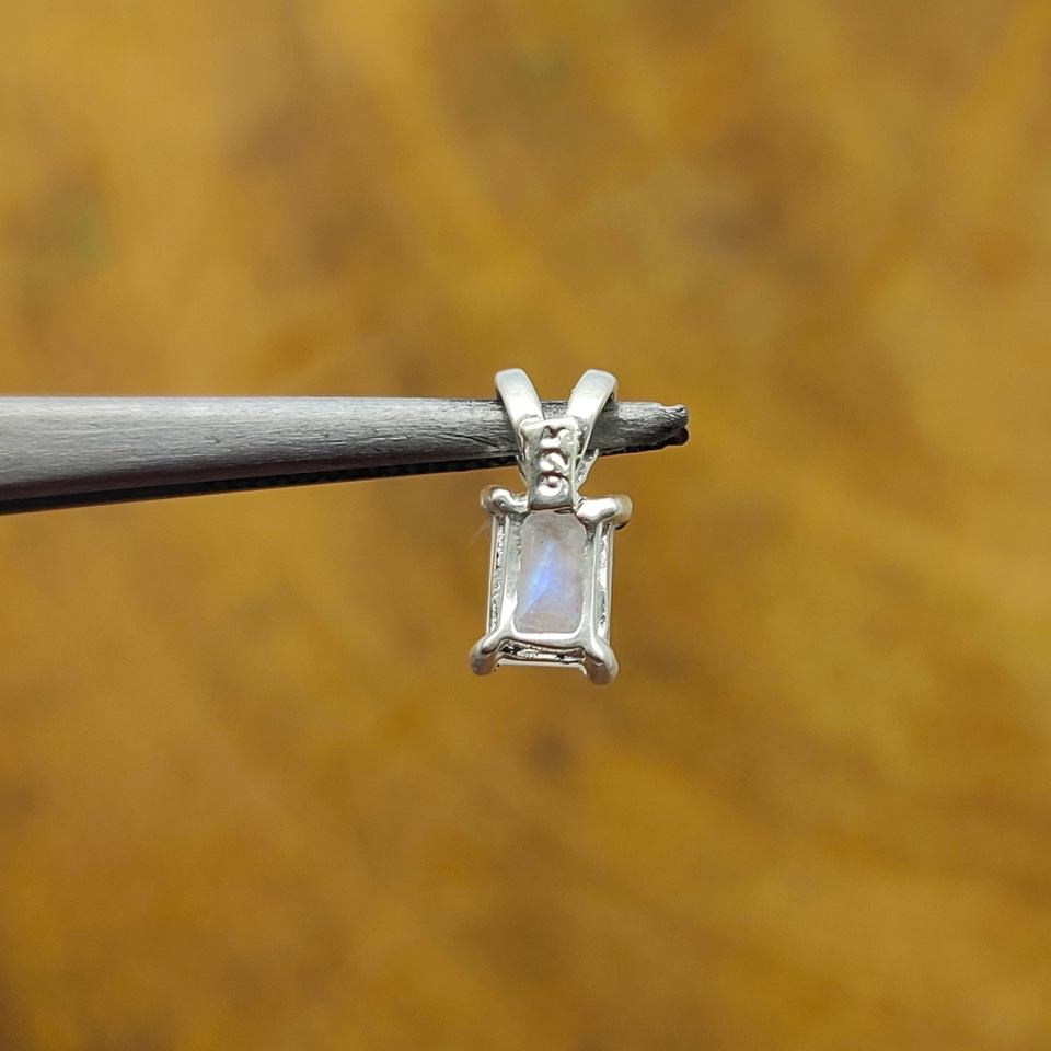 Rectangle Shape Faceted Rainbow Moonstone 925 Silver Pendant Necklace Artisan Crafted Tiny Silver Prong Fine Pendants Charms