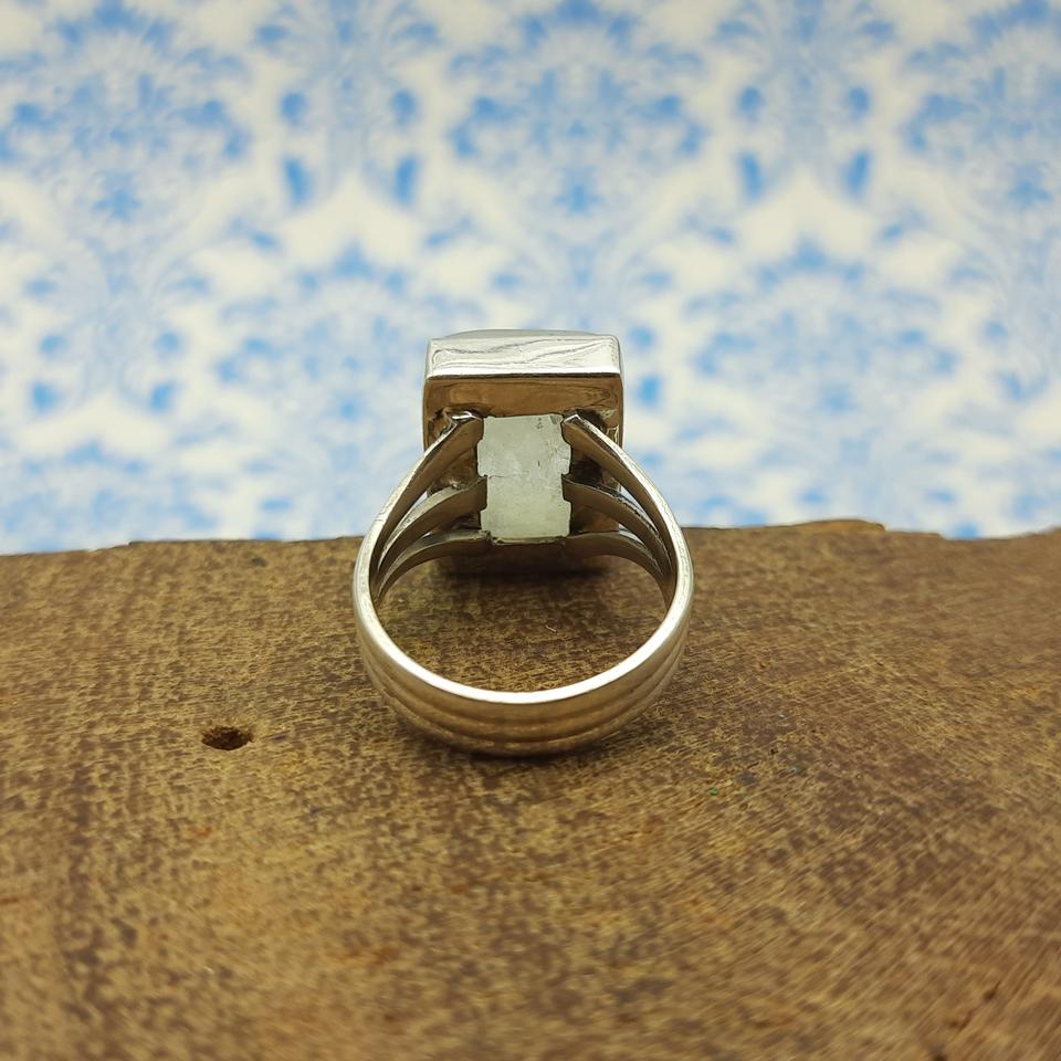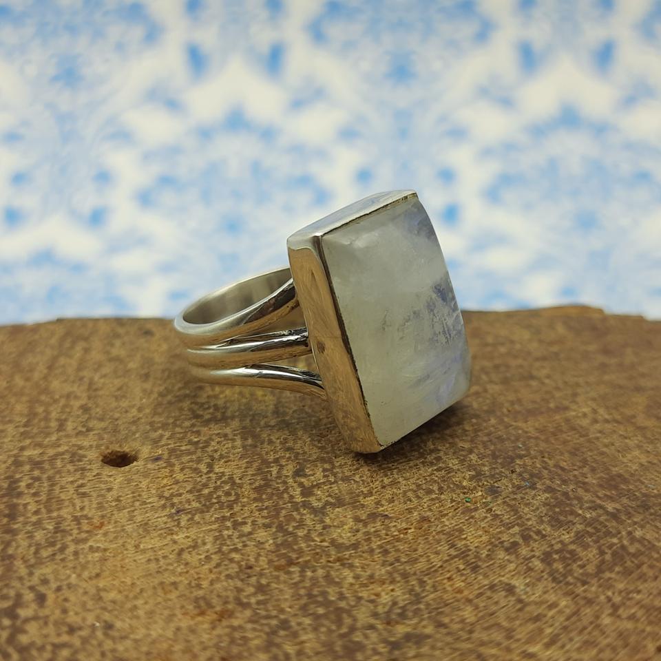 Rectangle Shape Rainbow Moonstone Solid Silver Bohemian Artisan Crafted Designer Ring New Arrival Trendy Ring