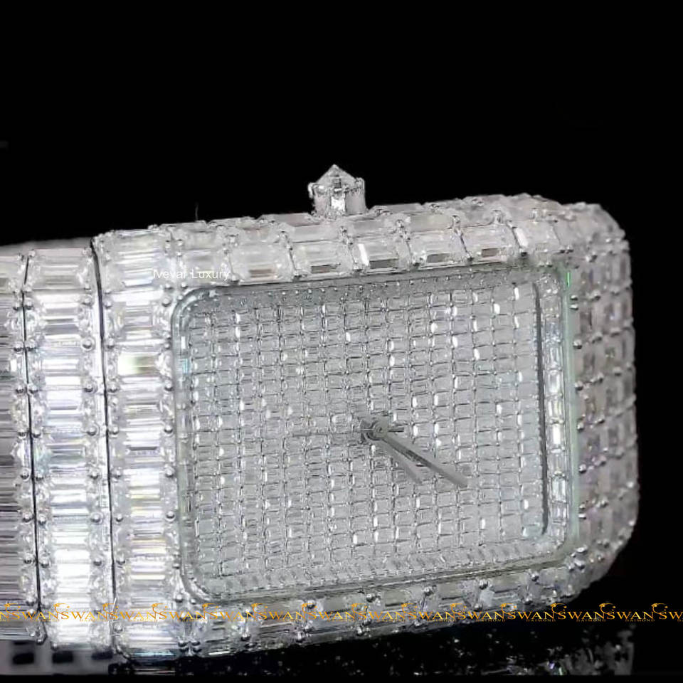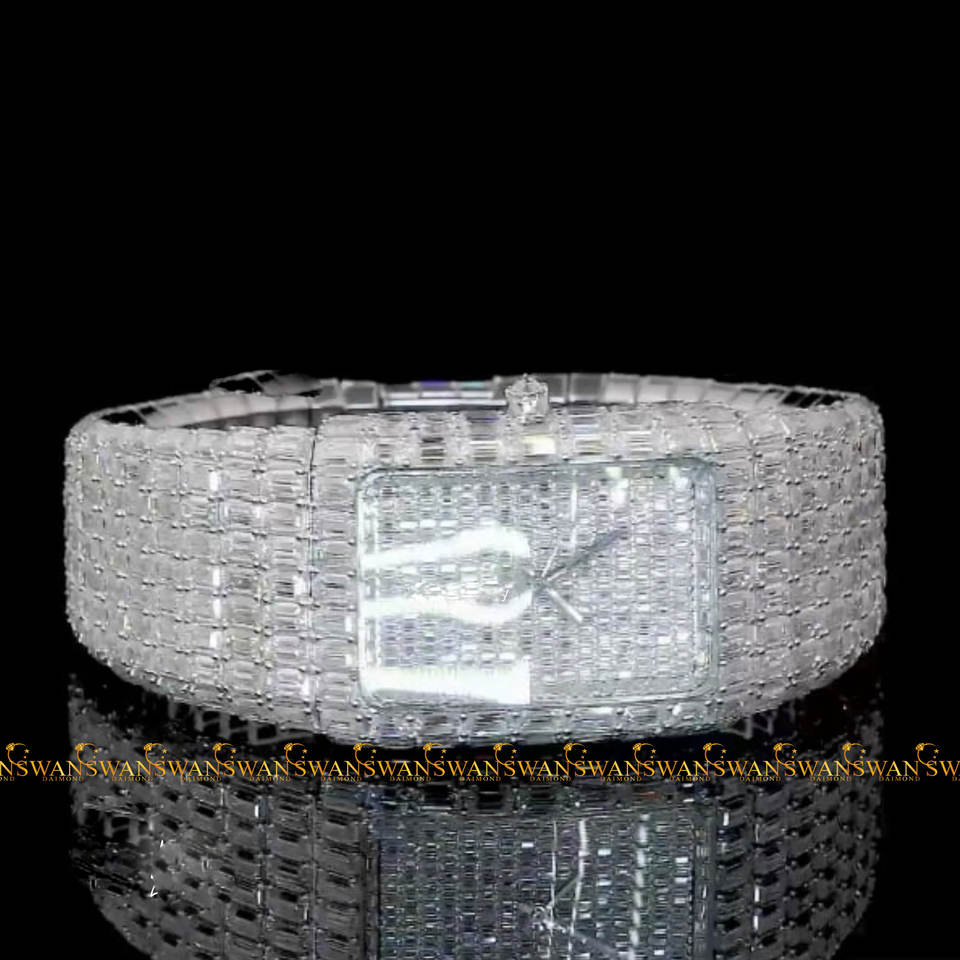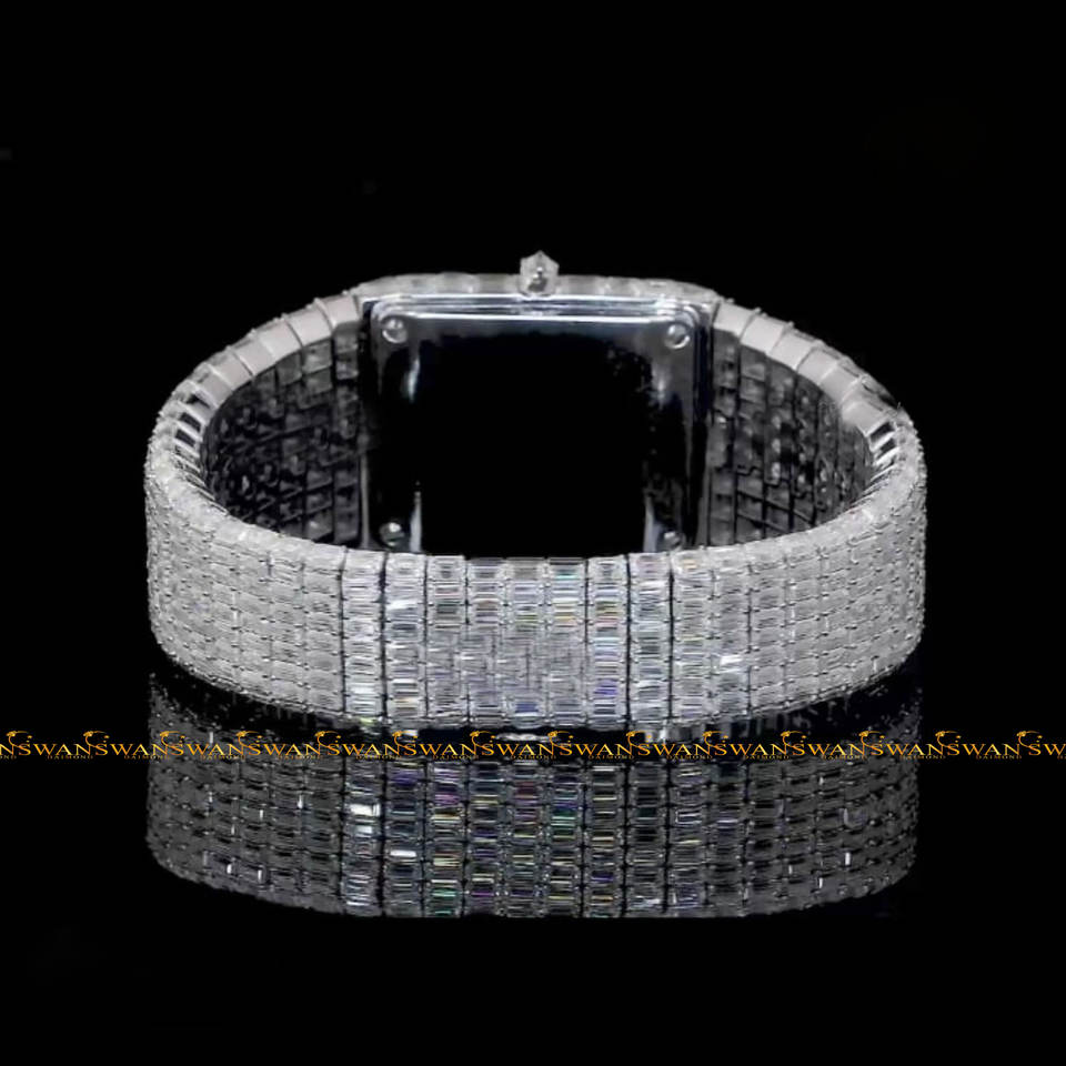 Rectangle Shaped Hip Hop Wrist Wear Baguette Cut Moissanite Watch in Very Unique Pattern Online Shopping Watch