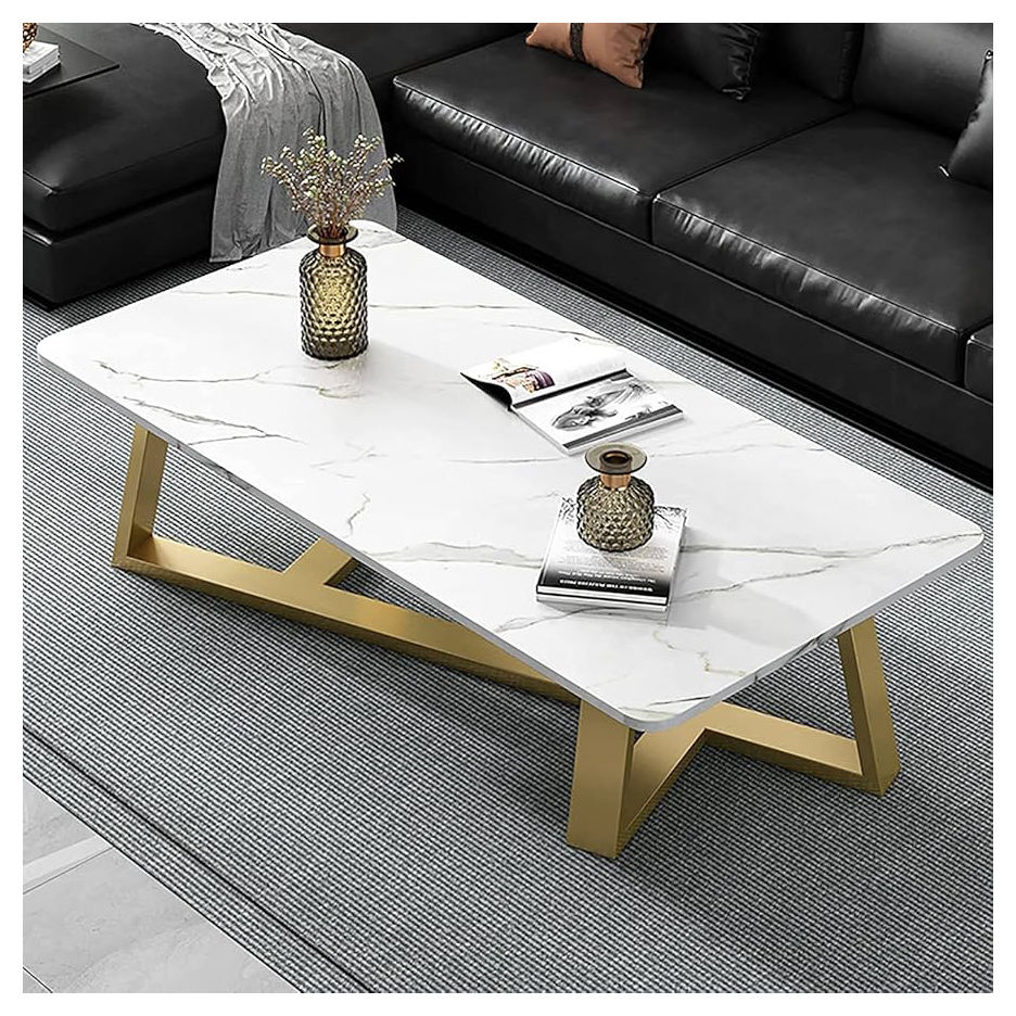 Rectangle Shaped Small Nordic Gold Metal Modern Marble Coffee Tables Set Movable Nesting Luxury Living Room Home