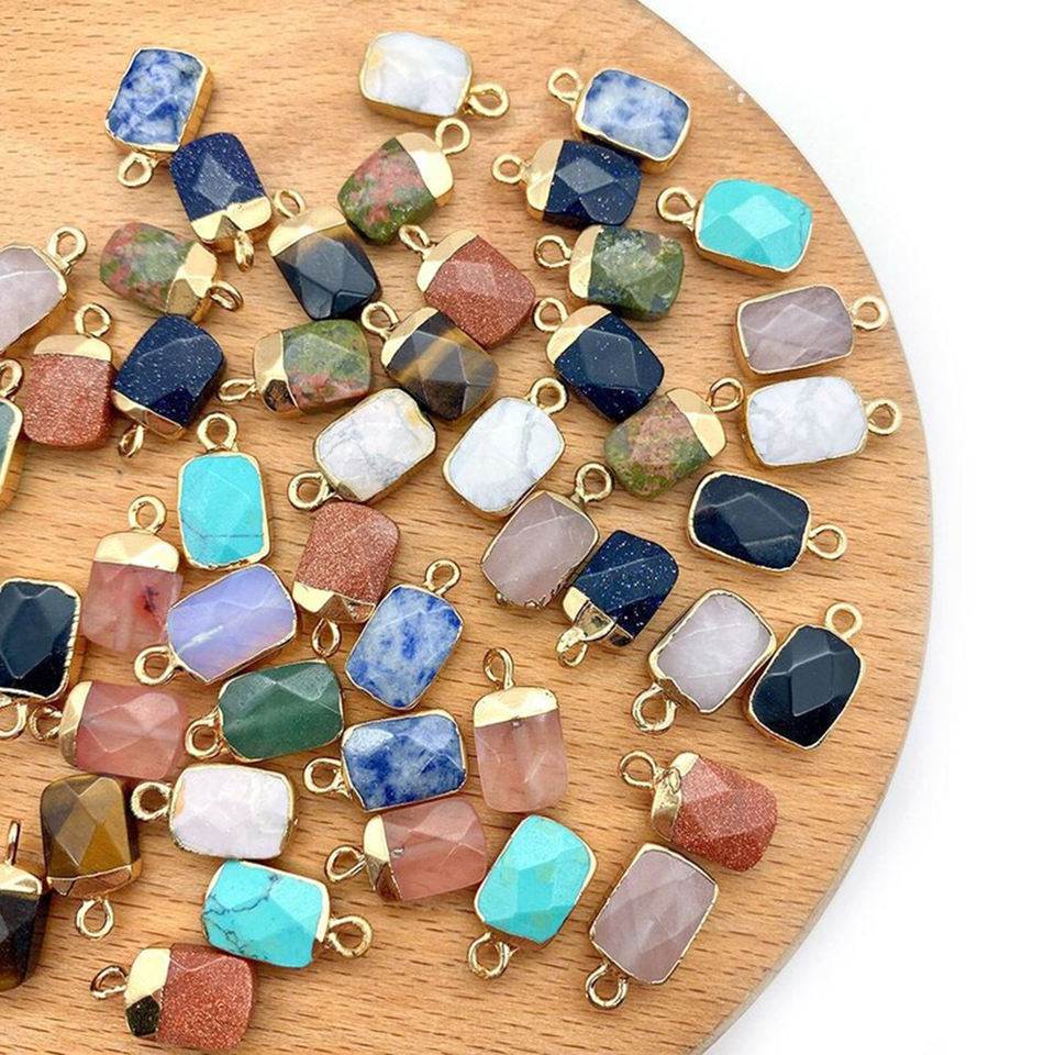 Rectangle Tiger Eye Gemstone Charms - Gold Electroplated Faceted Gemstone Charm Pendant