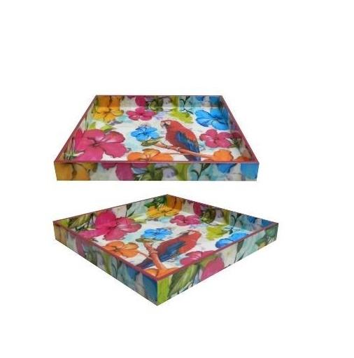 Rectangle Wood printed Serving Tray Natural Wood Solid Snack Trays with Edge Wooden Decorative Coffee Tea Platter