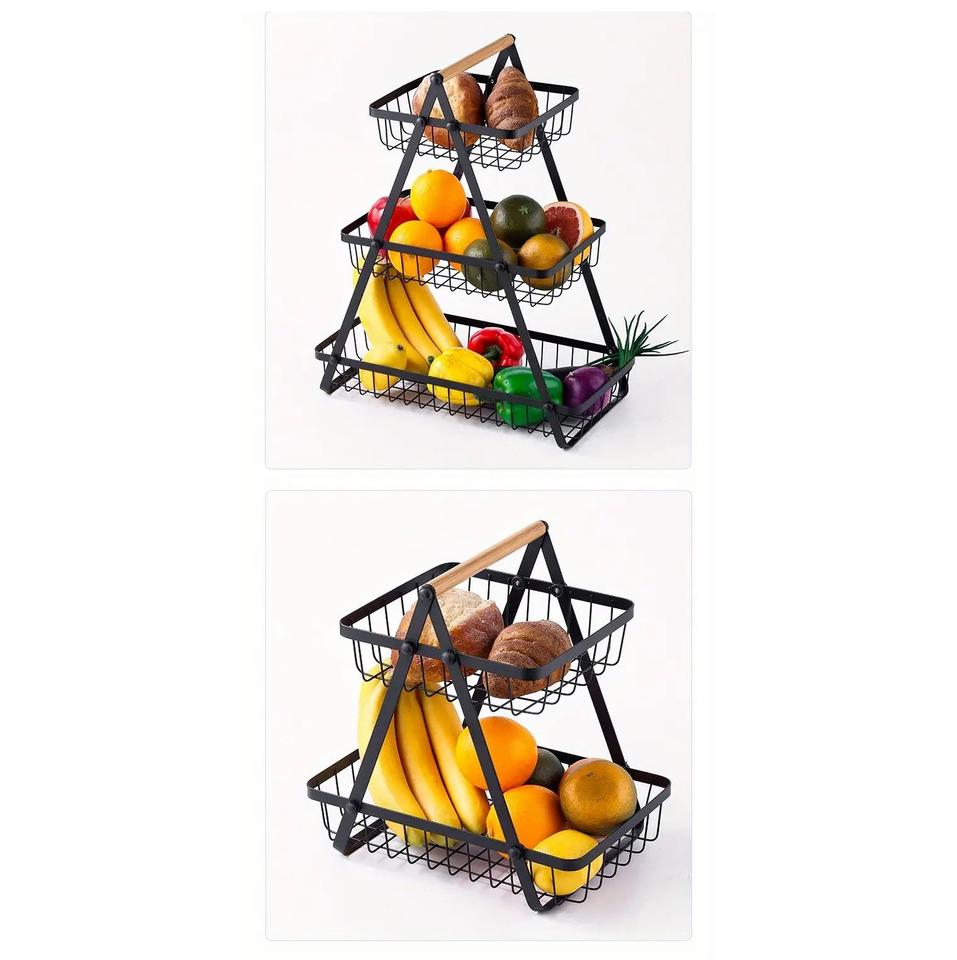 Rectangular Black Powder Coated Storage Baskets for Fruits and Vegetables Iron Kitchen Wire Metal Set for Food Storage