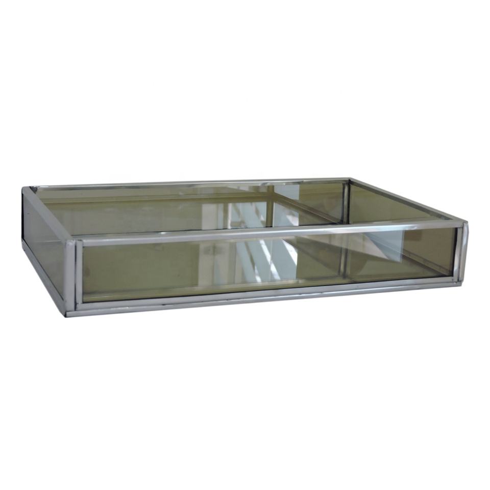 Rectangular Brass and Glass Jewelry Box Organizer Display Tray for Stylish Jewelry Storage