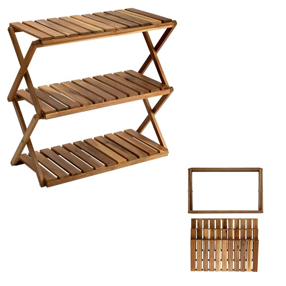 Rectangular Collapsible Solid Acacia Wood 3-Tier Storage Rack