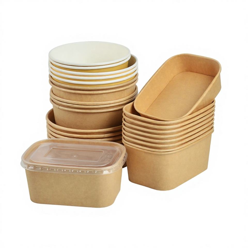Rectangular Custom 24 Oz Kraft White Food Container with Clear Lid Compostable Paper Bowl for Lunch Salad-SENANG Brand