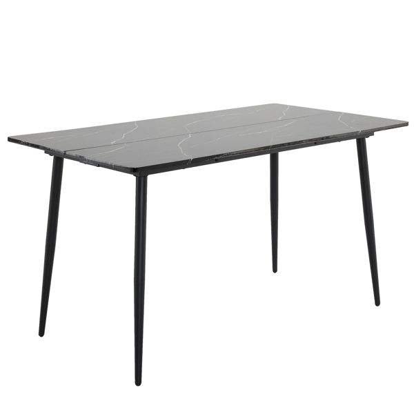 Rectangular Dining Table N101 140*76*76cm MDF Black Tabletop with PVC Marble Surface and Arc Easy Disassembly