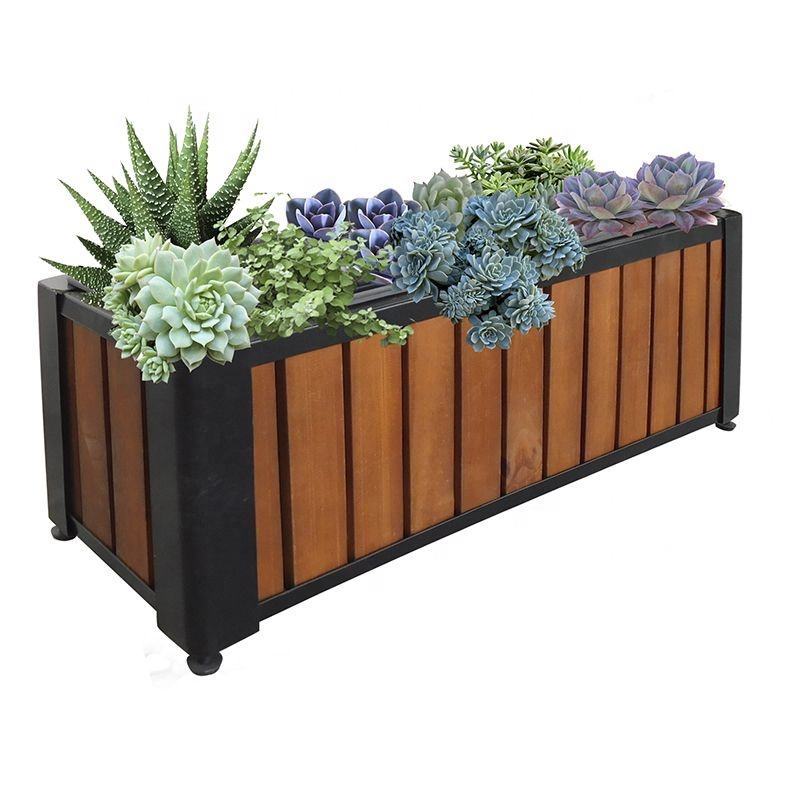 Rectangular Wood Planter Box with Powder-Coated Steel Frame