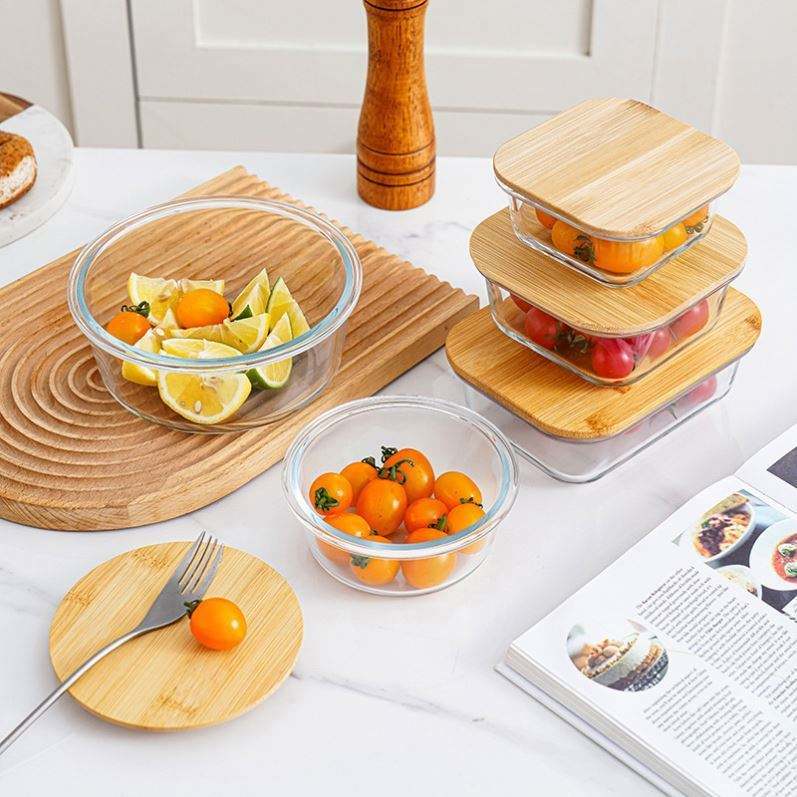 Rectangular Glass Fresh-keeping Bamboo Wood Cover Microwave Oven High Temperature Fresh-keeping Refrigerator sealed Lunch Box