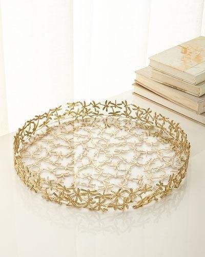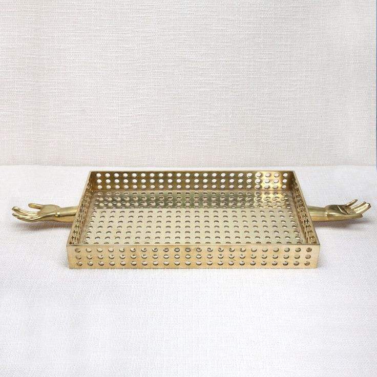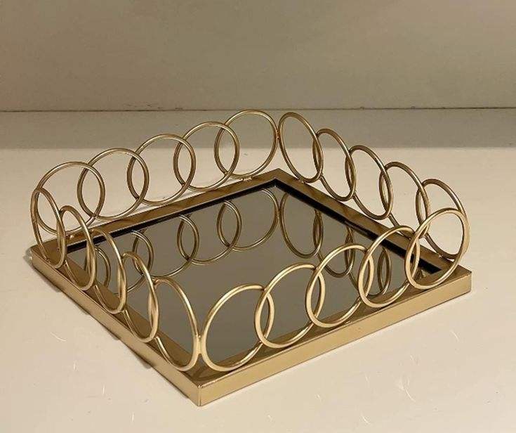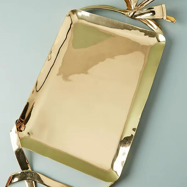 Rectangular Gold Ribbon Handle Tray Decorative Metal Platter Stylish Serving Dish Organizer Elegant Accent Tableware Home Decor