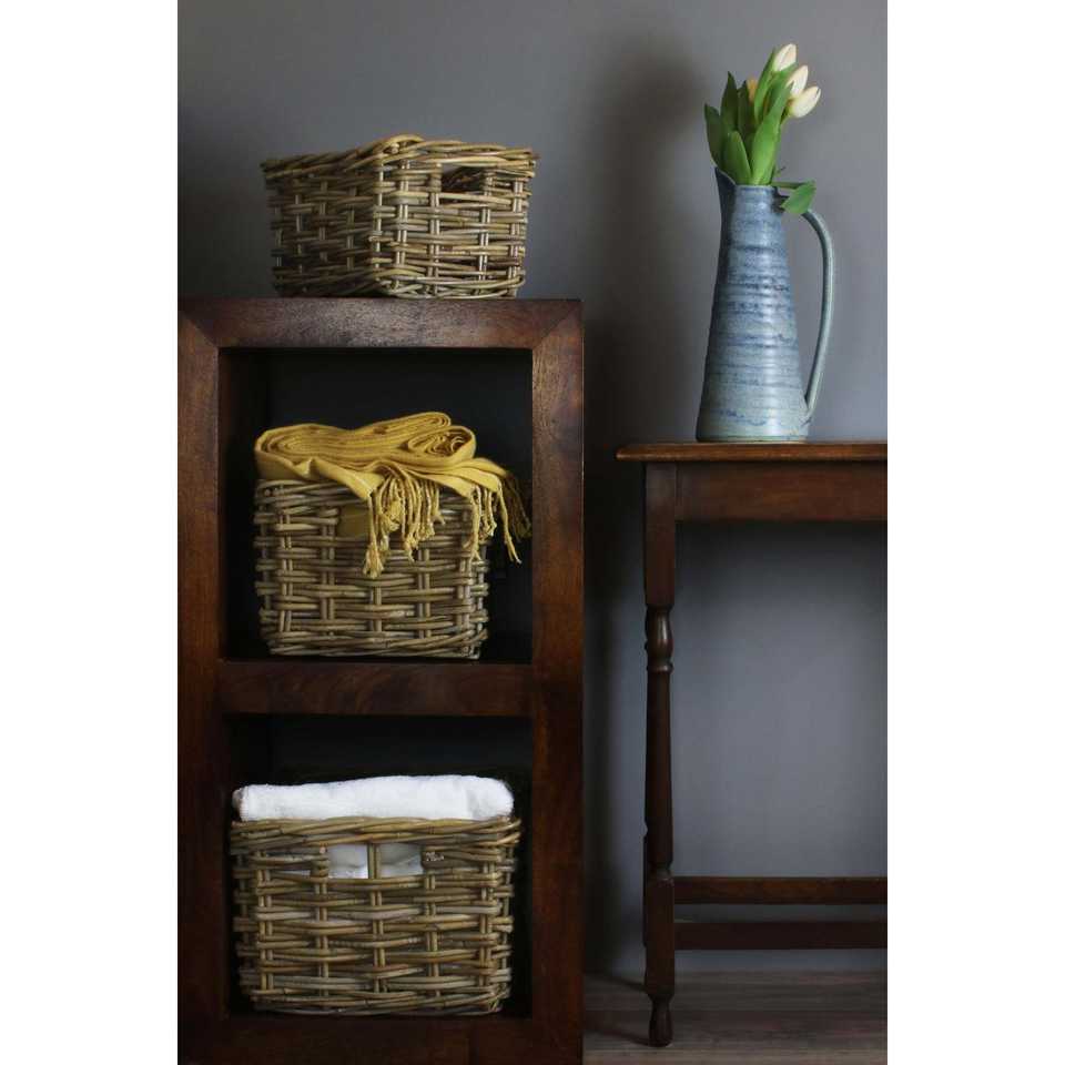 Rectangular Grey Rattan Storage Baskets Natural Wicker Picnic Basket with Lid Sustainable Household Use Features Woven Design