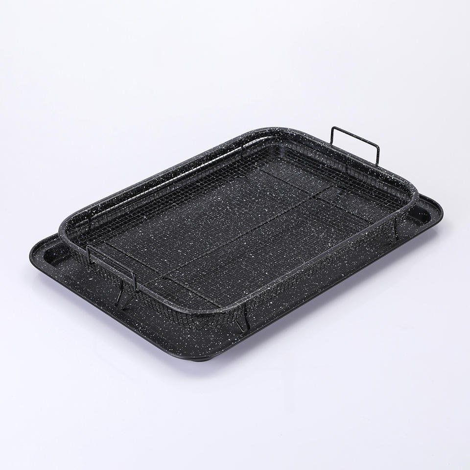 Rectangular Grill Pan With Wire Rack Non Stick Baking Tray For Home And Commercial Use