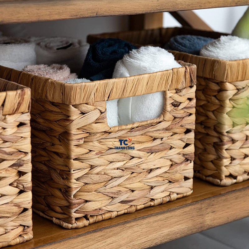 Rectangular Handwoven Baskets With Built-in Handles Water Hyacinth Baskets