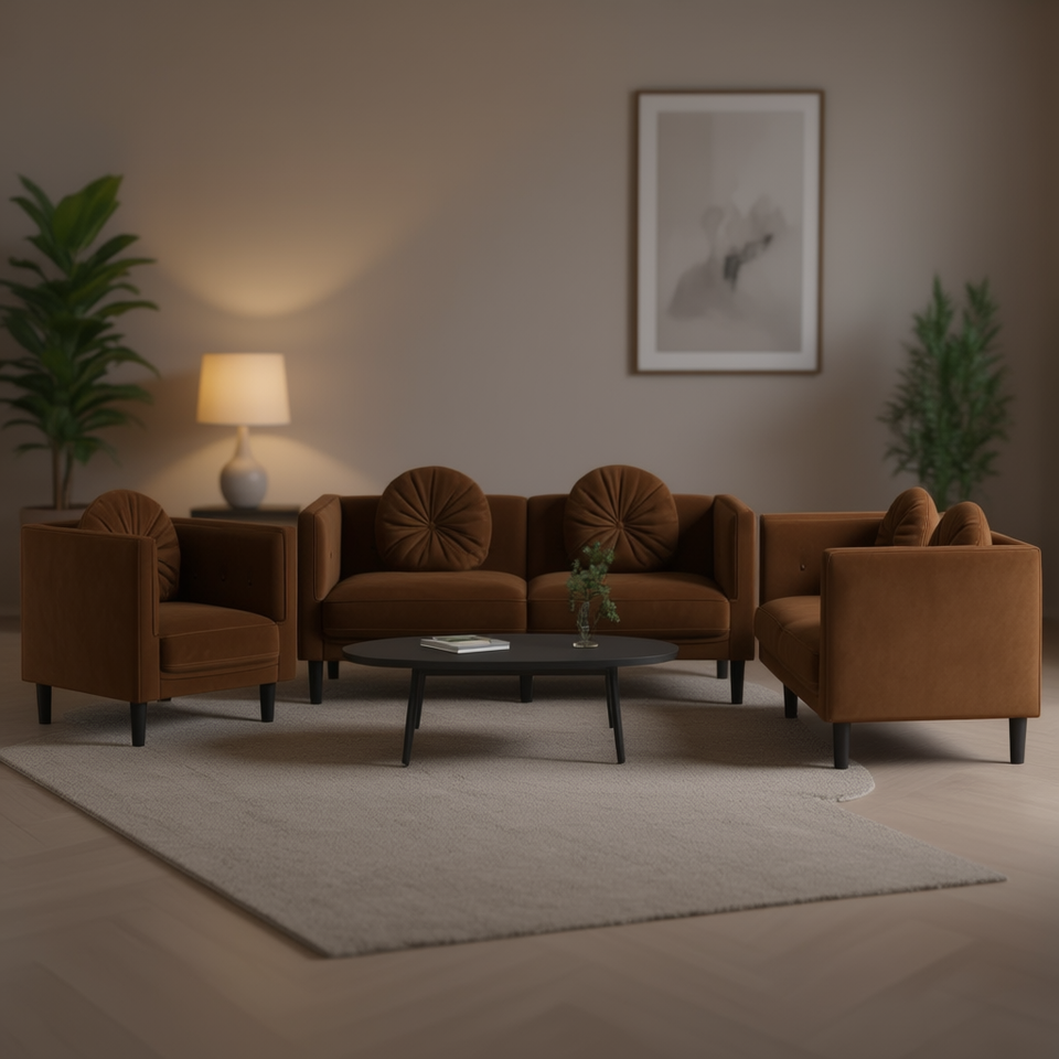 Modern Brown Velvet Sofa Set Living Room Furniture Rectangular Design Comfortable Seating