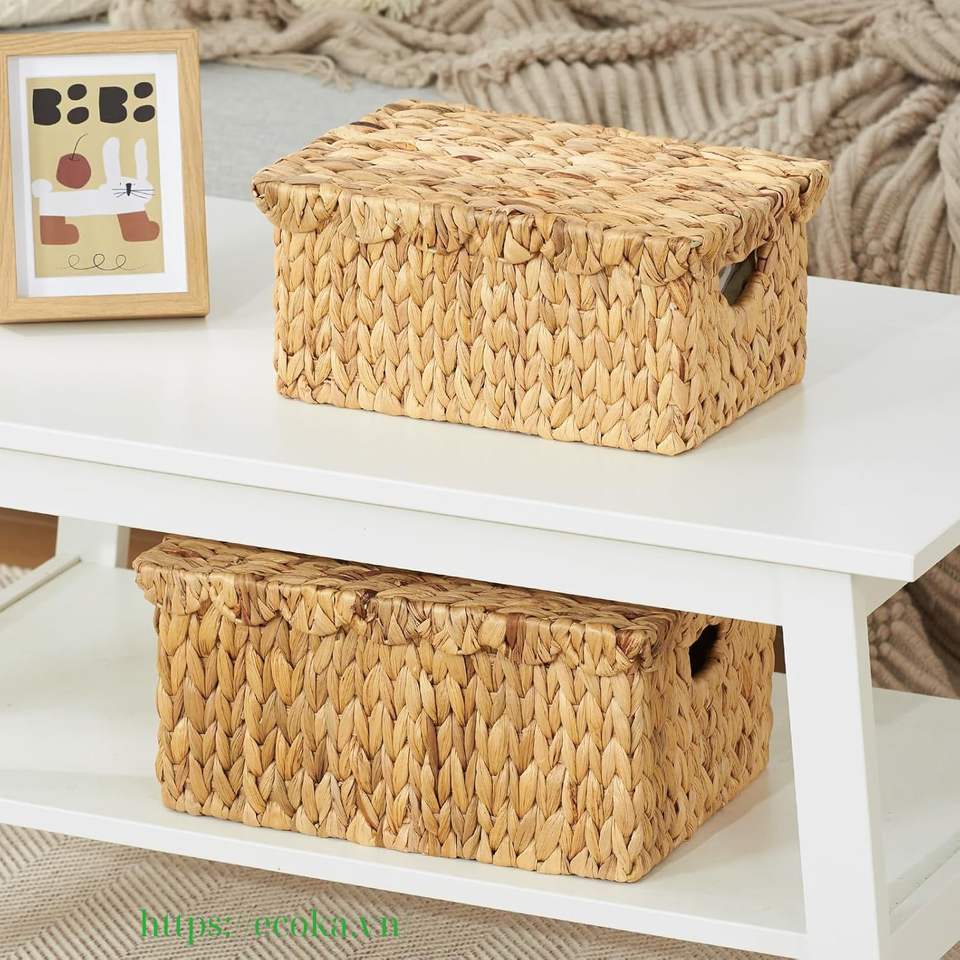 Rectangular Rattan Eco-Friendly Clothing Storage Basket Scalloped Edges Removable Tray Lid Multifunction Hand Vietnam Hot Sale