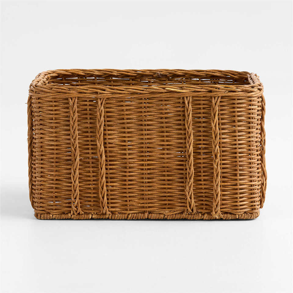 Rectangular Rattan Storage Basket Woven Organizer Basket Compact Storage Basket For Shelf Organization Living Room And Bedroom