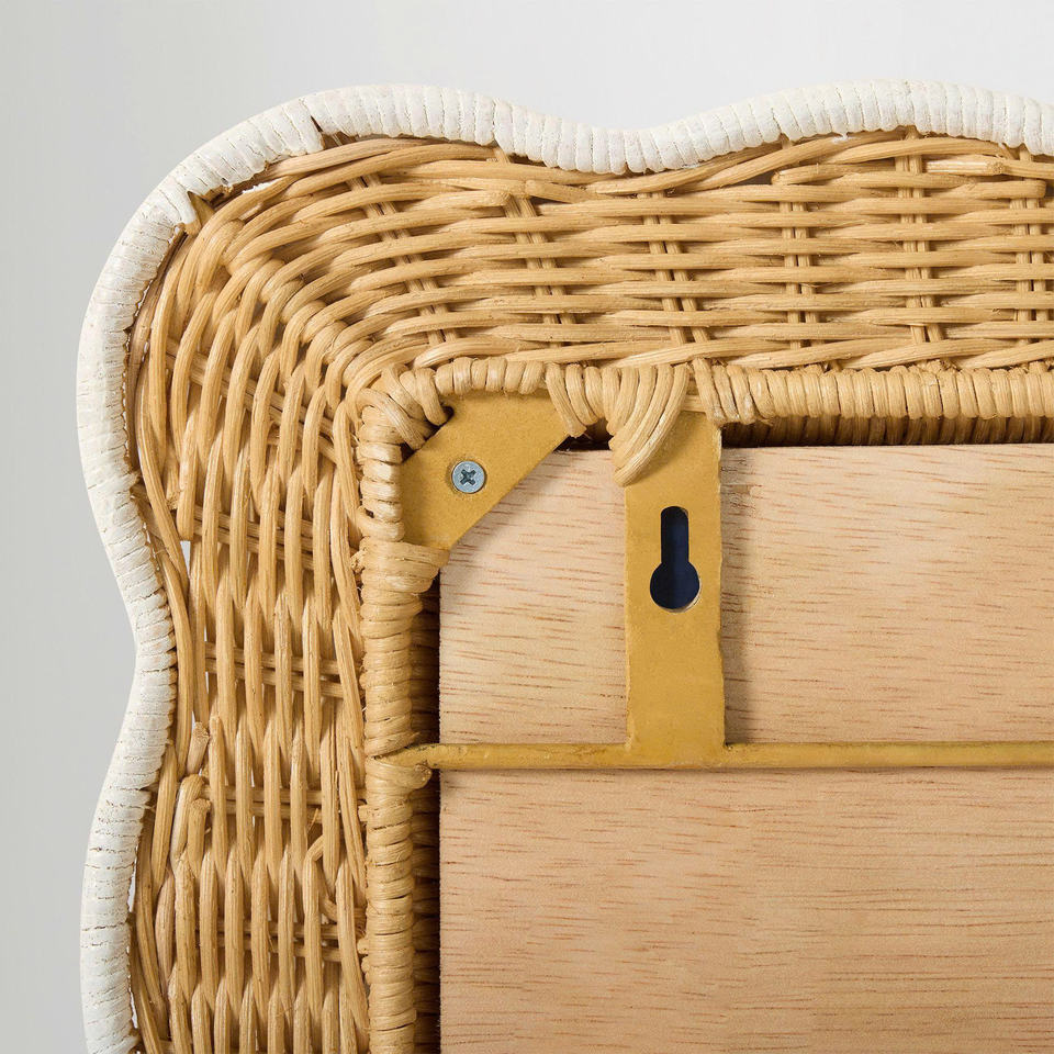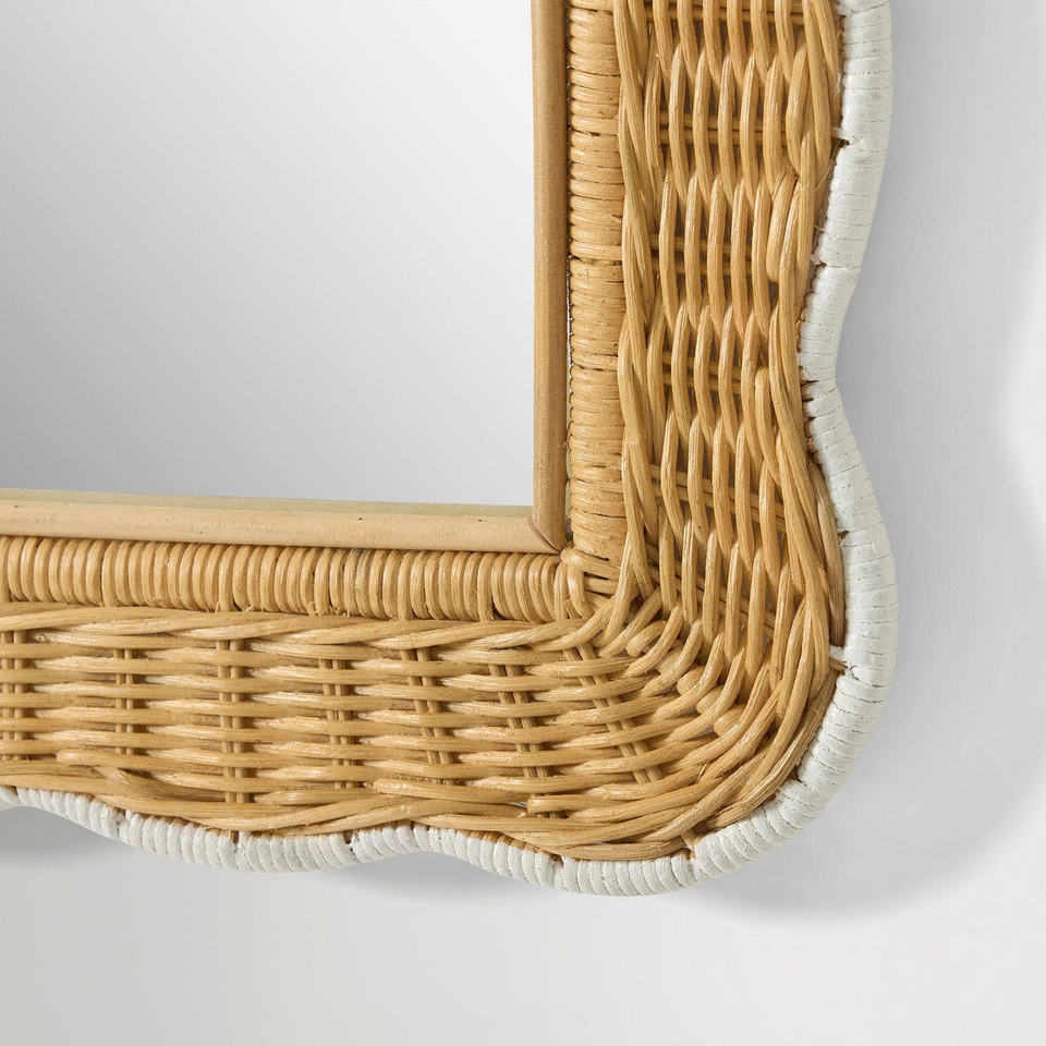 Rectangular Scalloped Rattan Wall Mirror - Handmade Woven Wicker Mirror for Home Decor & Bedroom