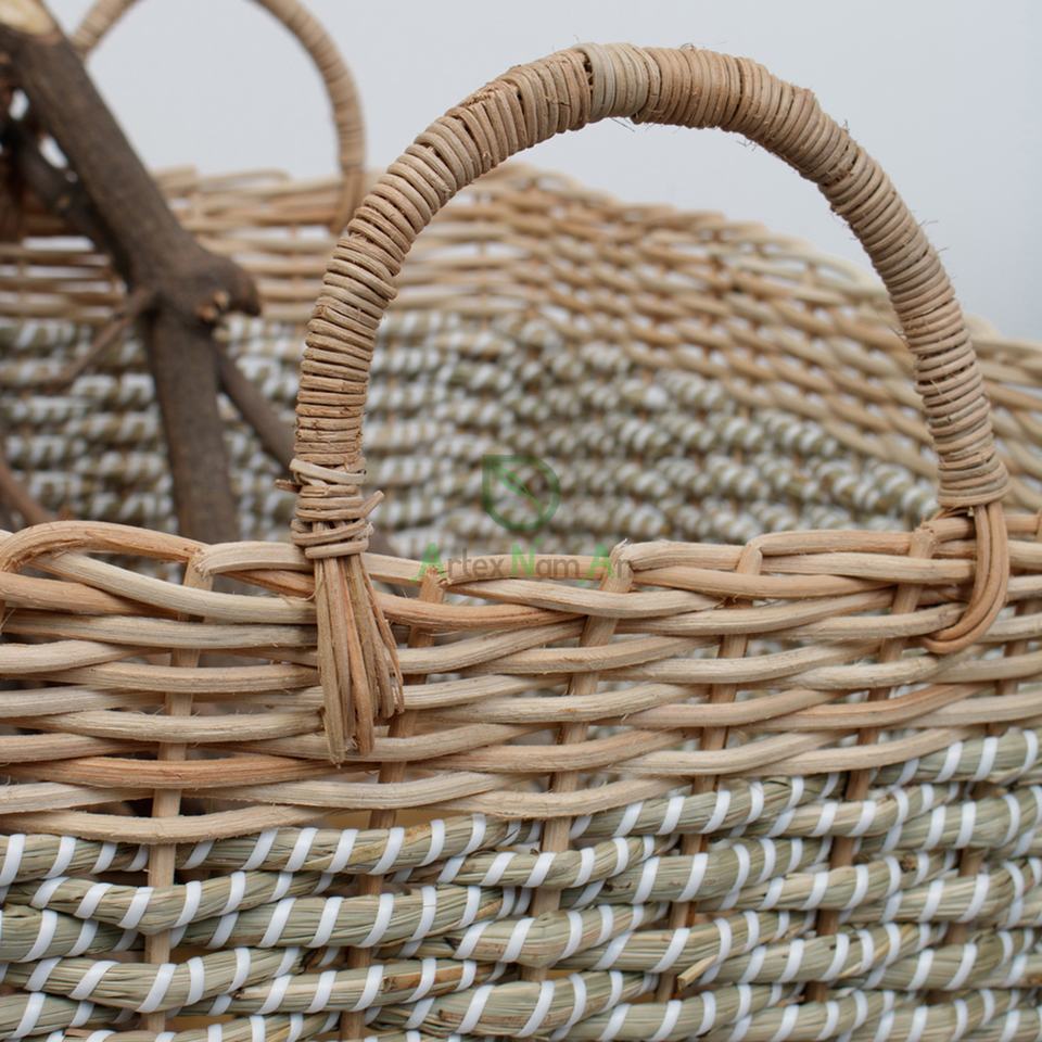 Rectangular Seagrass Storage Basket with Wheels/woven Laundry Rolling Hamper/wicker Log Basket