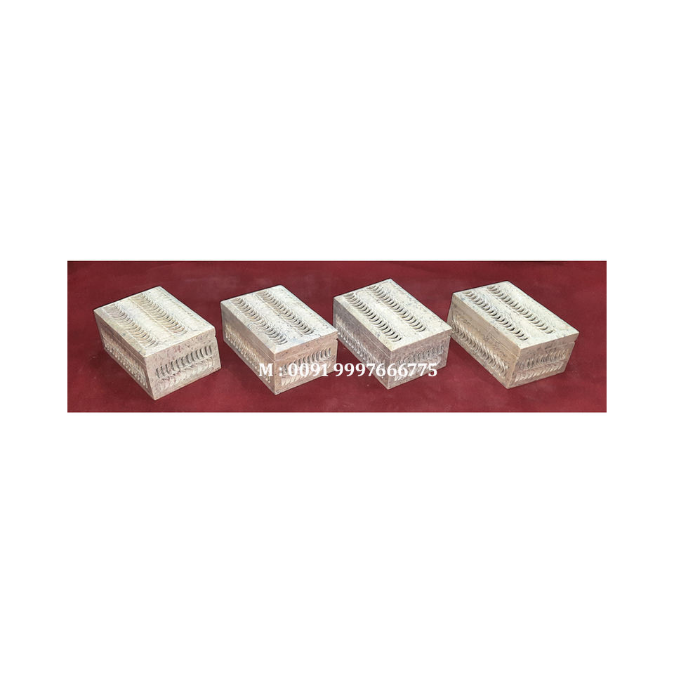 Rectangular Shape Soapstone Carving Jewelry Box With Fine Finishing And Best Workmanship Floral Design For Gifting Purpose