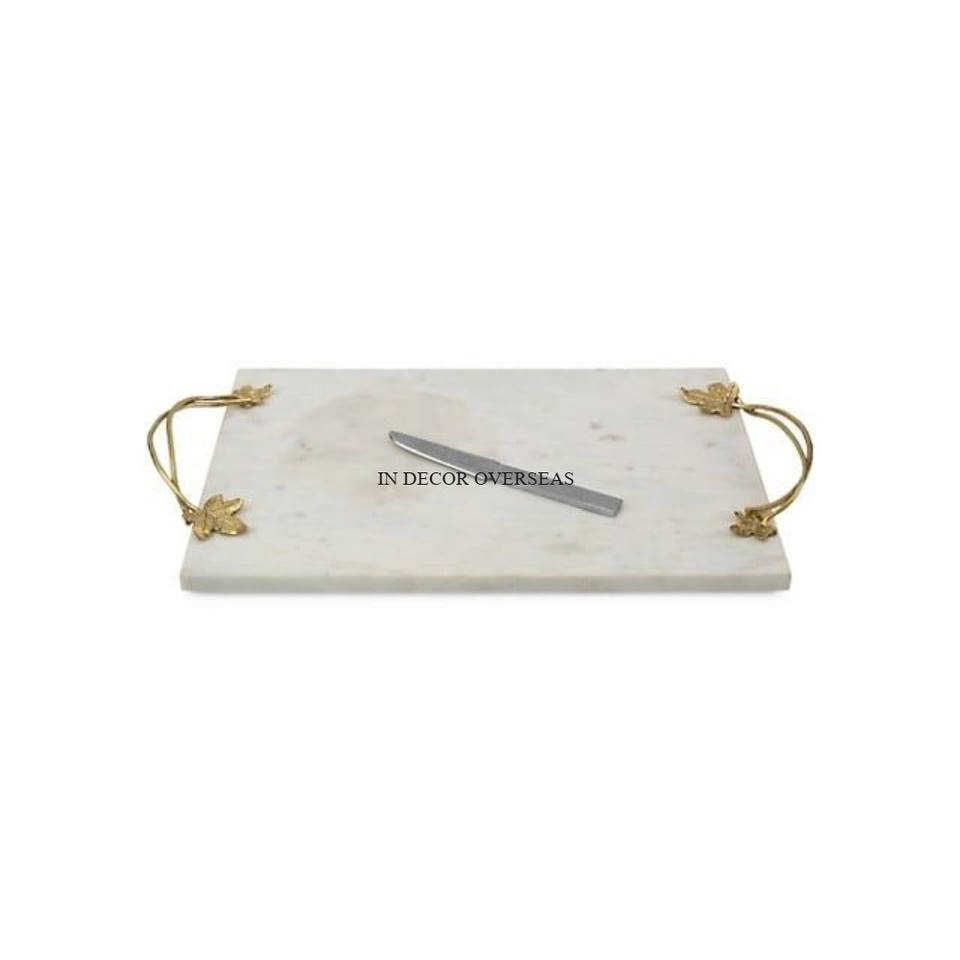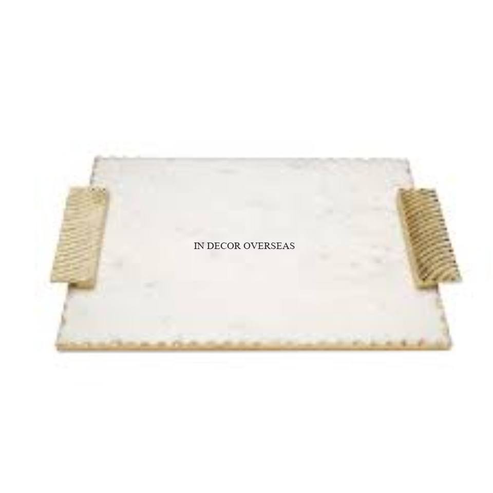 Rectangular Shape Top Quality White Marble Made Rectangle Shape Serving Tray With Gold Plated Metal Edges Designer From India