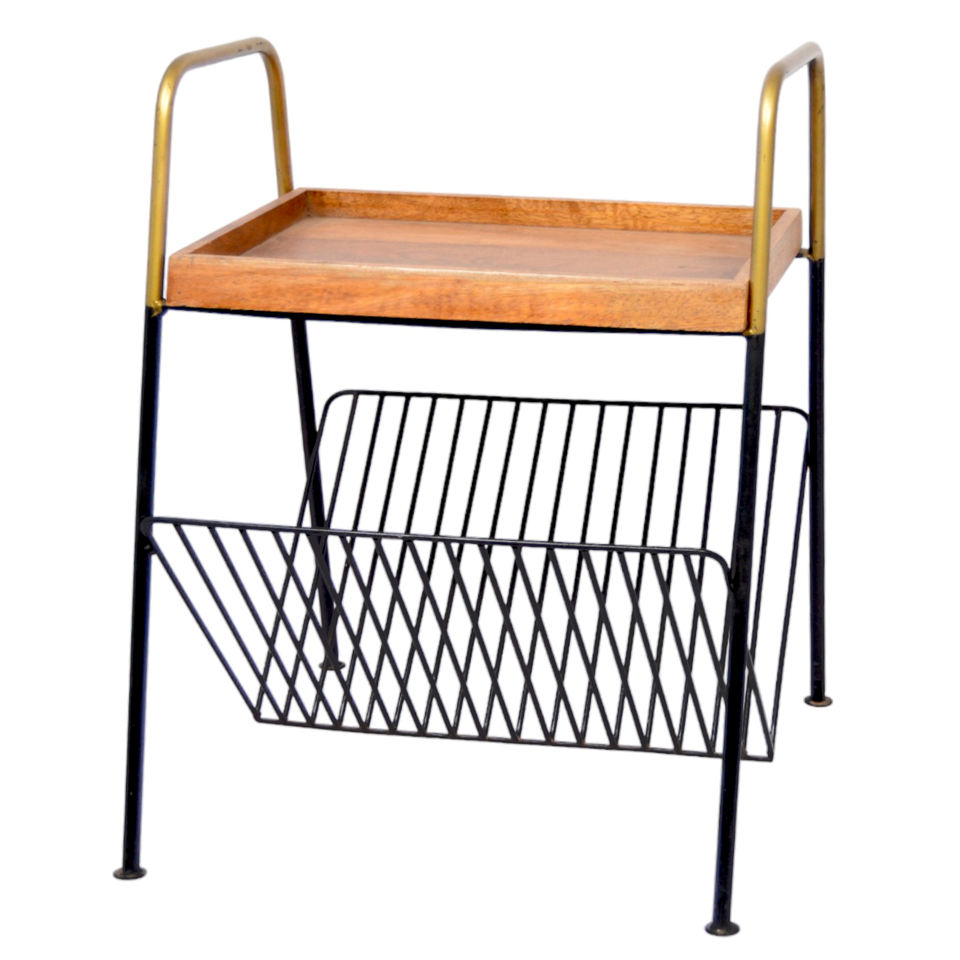 Farmhouse-Style Small Indoor Rectangular Side Table Multi-Functional Coffee Table with Magazine Holder for Living Room Furniture