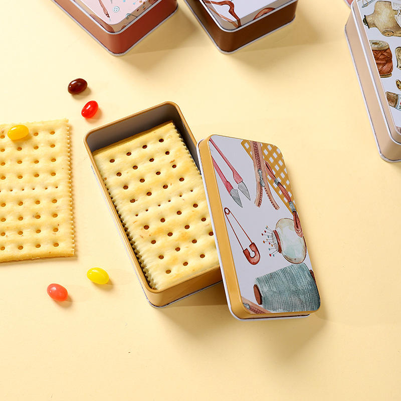 Rectangular Tin Box Metal Storage Container Flip Lid Patterned Design For Candy Cookies Small Items Gift Box